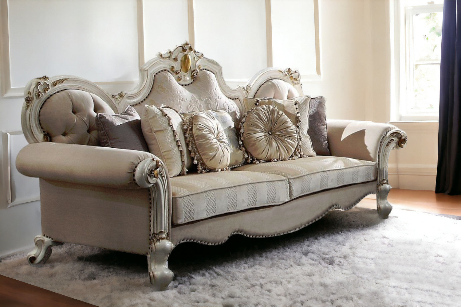 93" Fabric Velvet And Pearl Sofa With Three Toss Pillows