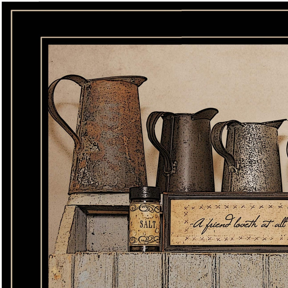 Add an air of fashion to your room and rejuvenate the space with this a friend loveth at all time 3 black framed print wall art. This print is a visual artistic expression that allows you to decorate your space in style. Reproduced for you on paper, this hanging decorative accent will be a trendy and fashionable way to dress your walls. Hang on your wall to add some up to date fashion and decoration. Instantly liven up your space with this art that brings color and dimension to your walls. 15 inches H x 19 inches W x 1 inches D