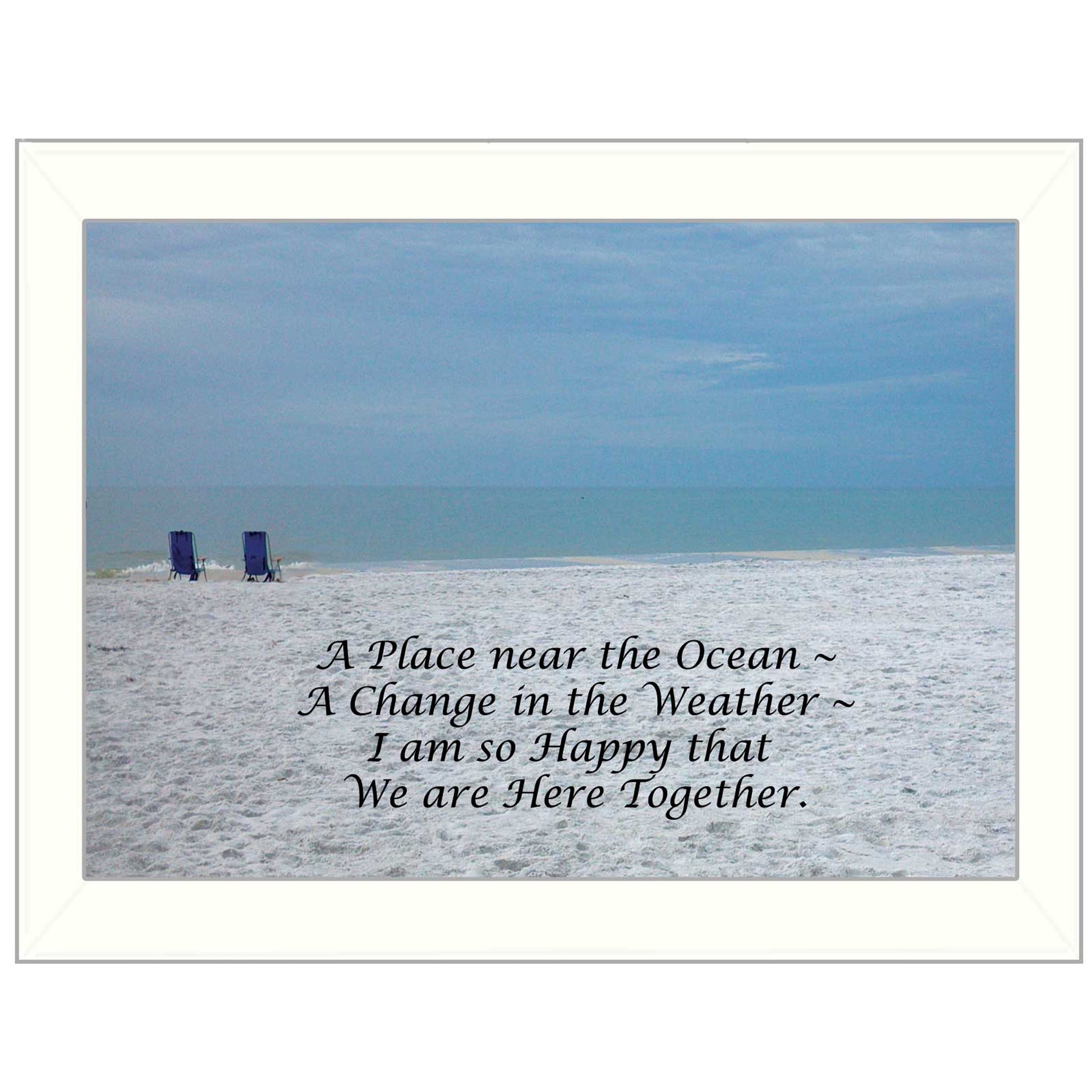 The a place near the ocean white framed print wall art is the perfect decorative accessory for your home. This print is a visual artistic expression that allows you to decorate your space in style. Reproduced for you on paper, this hanging decorative accent will be a trendy and fashionable way to dress your walls. Hang on your wall to add some up to date fashion and decoration. Utilize this opportunity to create a focal point in the room with this fabulous wall decor option. 10 inches H x 14 inches W x 1 inches D