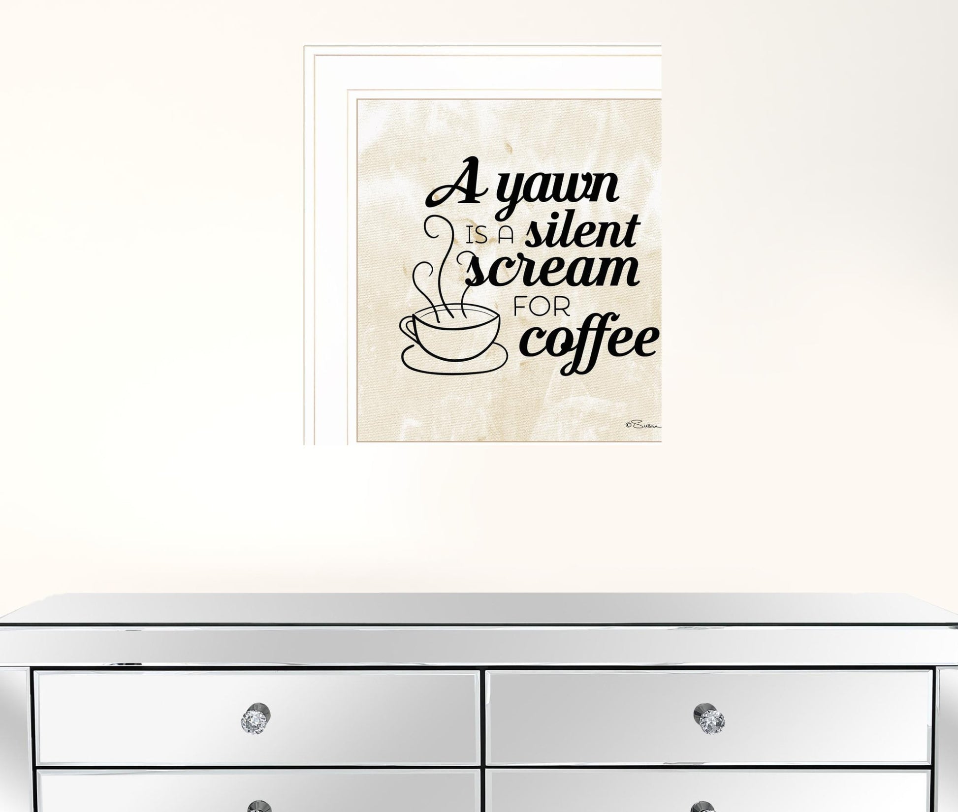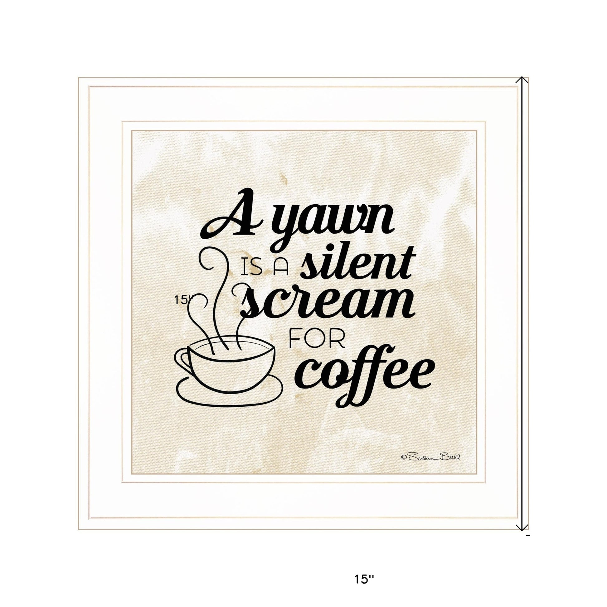 This a silent scream for coffee 1 white framed print wall art will add a beautiful decorative accent to your decor. This print is a visual artistic expression that allows you to decorate your space in style. Reproduced for you on paper, this hanging decorative accent will be a trendy and fashionable way to dress your walls. Adding this hanging wall art to your space to make your room feel more finished and attractive. Instantly liven up your space with this art that brings color and dimension to your walls. 15 inches H x 15 inches W x 1 inches D