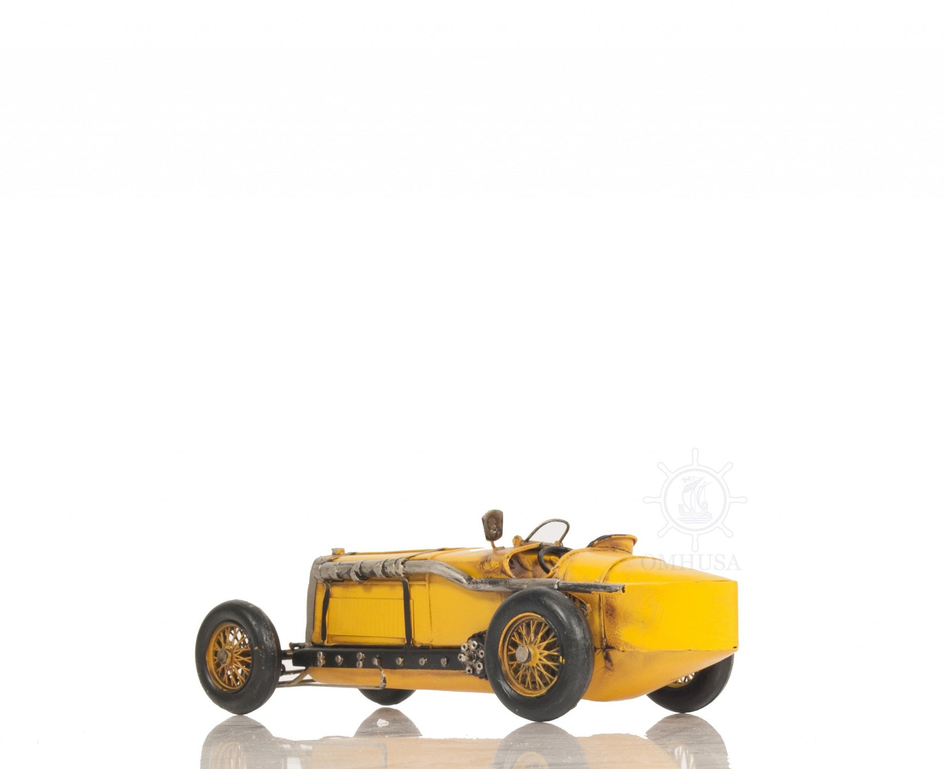 Unveiled in 1924 by the Italian manufacturer Alfa Romeo, the P2 was a record-setting car. This amazing Alfa Romeo P2 Classic Racing Car Sculpture is a handmade replica of this historic car of the early days of automotive sports. Entirely made out of metal, it features stunning details like a front radiator, a black steering wheel, a seat, and rolling spoked wheels. Finished in a classic yellow color, it is a great addition to any classic car collection. 3'' x 13'' x 5"