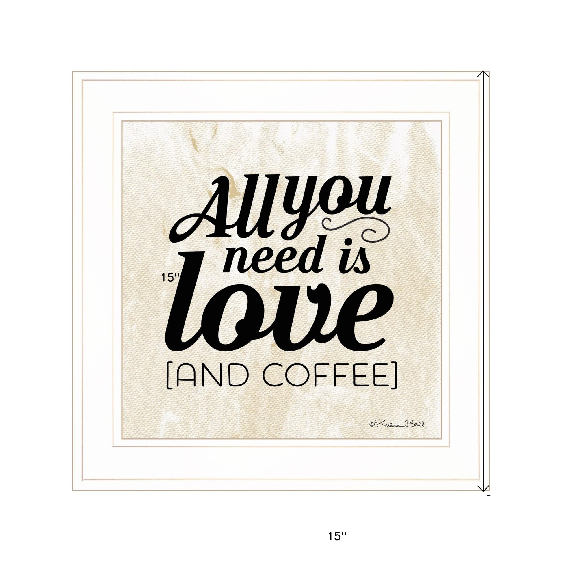 Add an air of fashion to your room and rejuvenate the space with this all you need is love and coffee 1 white framed print wall art. This print is a visual artistic expression that allows you to decorate your space in style. Reproduced for you on paper, this hanging decorative accent will be a trendy and fashionable way to dress your walls. Adding this hanging wall art to your space to make your room feel more finished and attractive. Instantly liven up your space with this art that brings color and dimension to your walls. 15 inches H x 15 inches W x 1 inches D