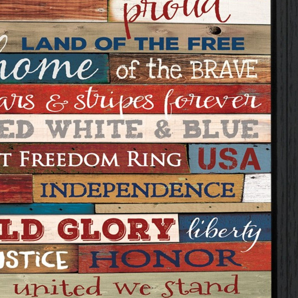 Add an air of fashion to your room and rejuvenate the space with this america proud 1 black framed print wall art. This print is a visual artistic expression that allows you to decorate your space in style. Reproduced for you on paper, this hanging decorative accent will be a trendy and fashionable way to dress your walls. Hang on your wall to add some up to date fashion and decoration. Utilize this opportunity to create a focal point in the room with this fabulous wall decor option. 14 inches H x 10 inches W x 1 inches D