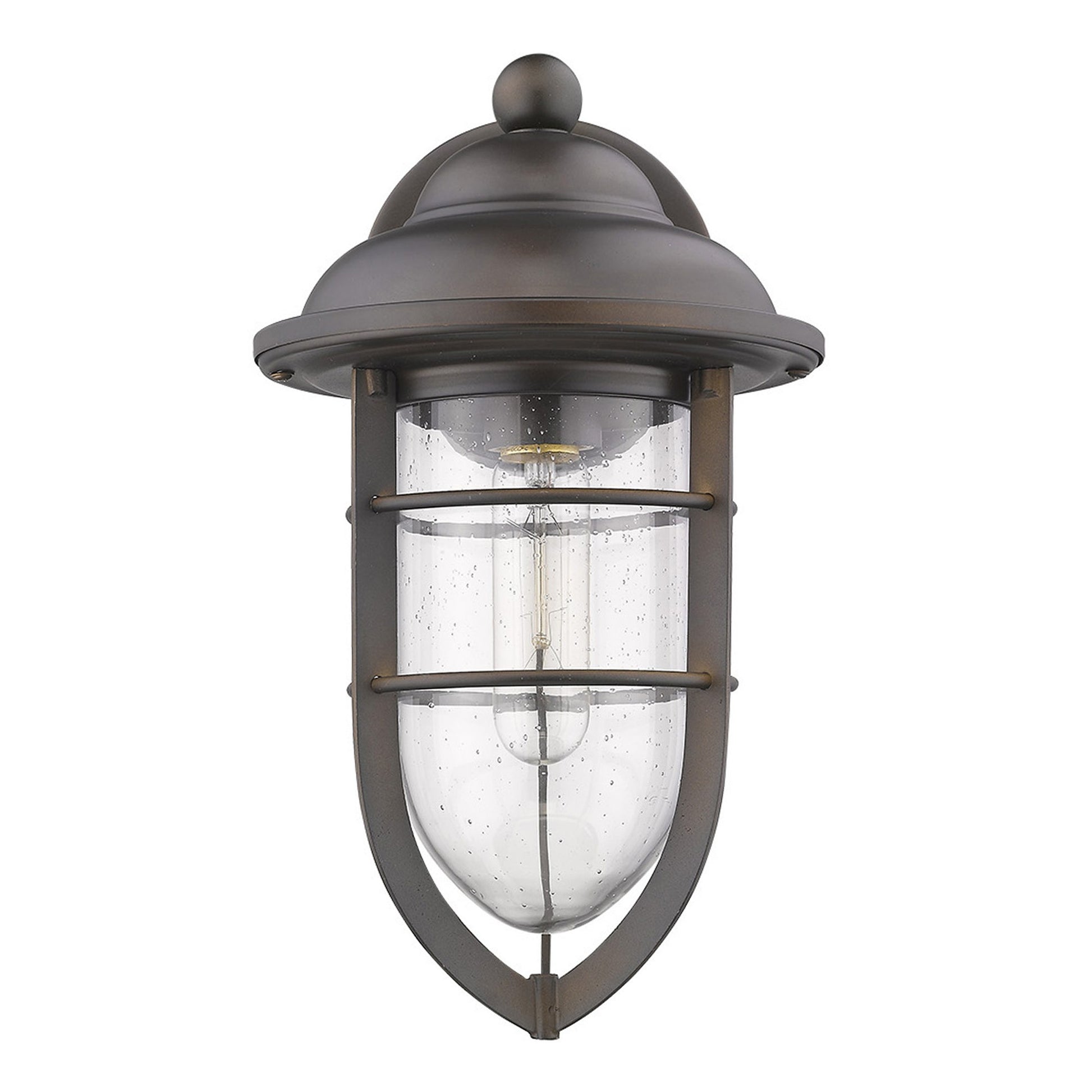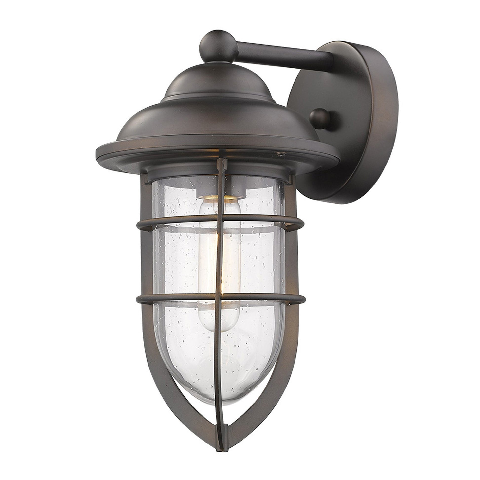 Add a touch of traditional design to any space in your home with this Antique Bronze Teardrop Shape Wall Sconce. The wall bracket has a simple circular shape and a hanging arm that is attached to the main sconce shape. The top of the sconce has a two-tier dome shape which extends downwards into a tapered cage frame with a pointy end at the bottom. The metal pieces are all colored in an antique bronze finish. Inside the frame there is an urn shaped clear glass globe which houses the bulb. This sconce will add elegance and style to your interior and exterior spaces and provide ambient lighting as well. 12.5" H x 7.5" W x 8.5" D