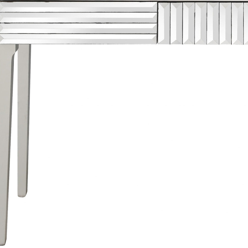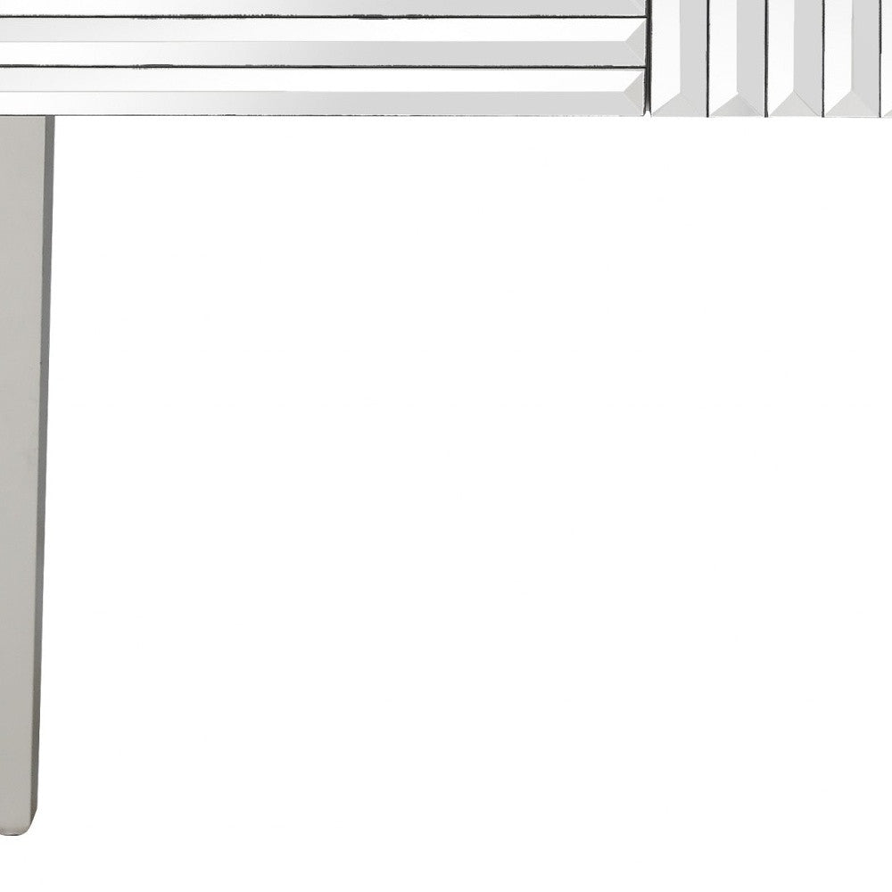 Bright and glamorous, the Antiqued Silver Finish Mirror Console is a contemporary piece that brings a touch of sophistication to your living space. It is simple and goes with anything in your home with its antique silver finish. The console features an interesting geometric design on its drawers, creating elegant and alluring aesthetics. With its silver antique finish, this console is sure to grab your guests' attention. It includes two drawers to store little items. 30.5" x 47.2" x 15.7".