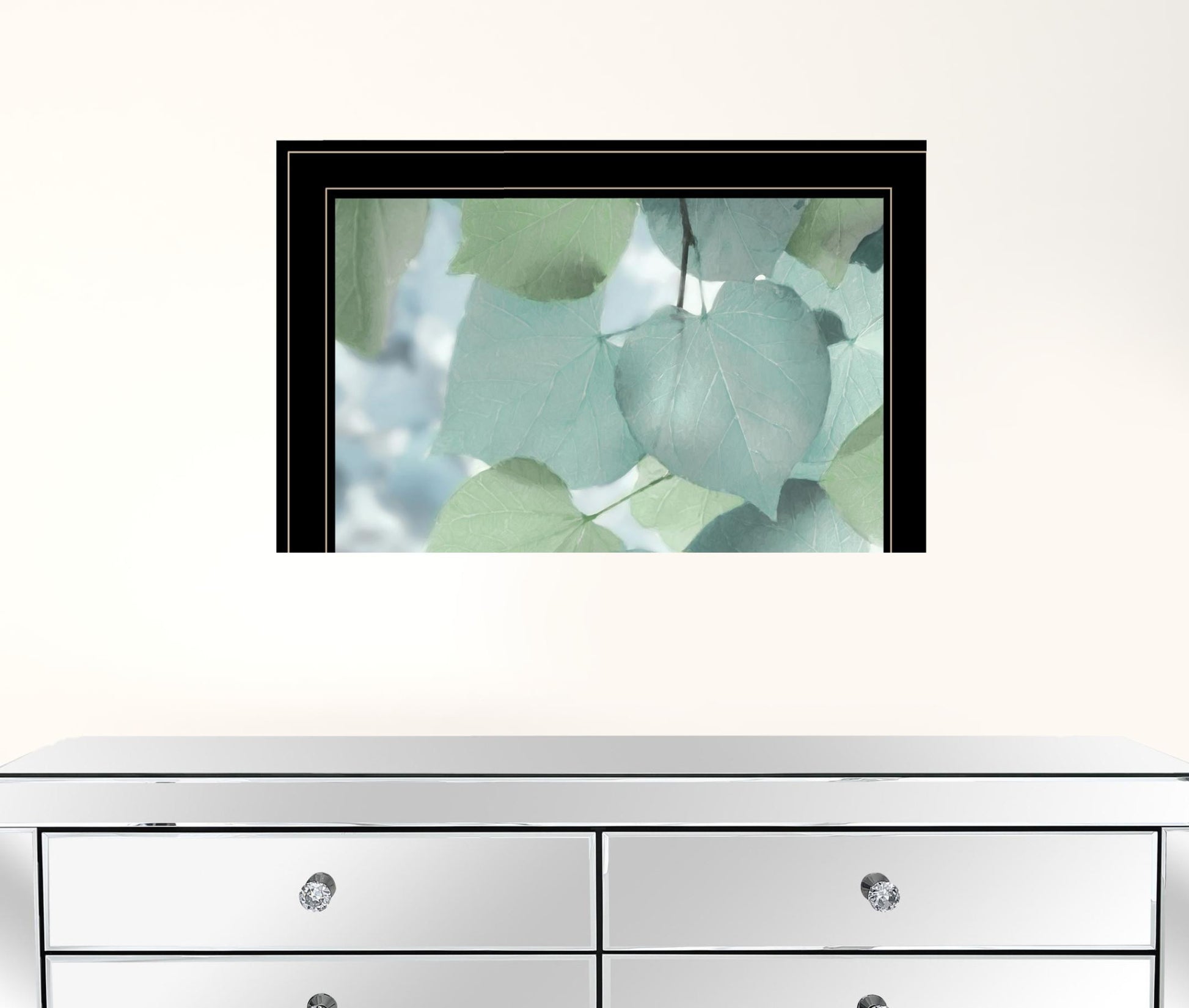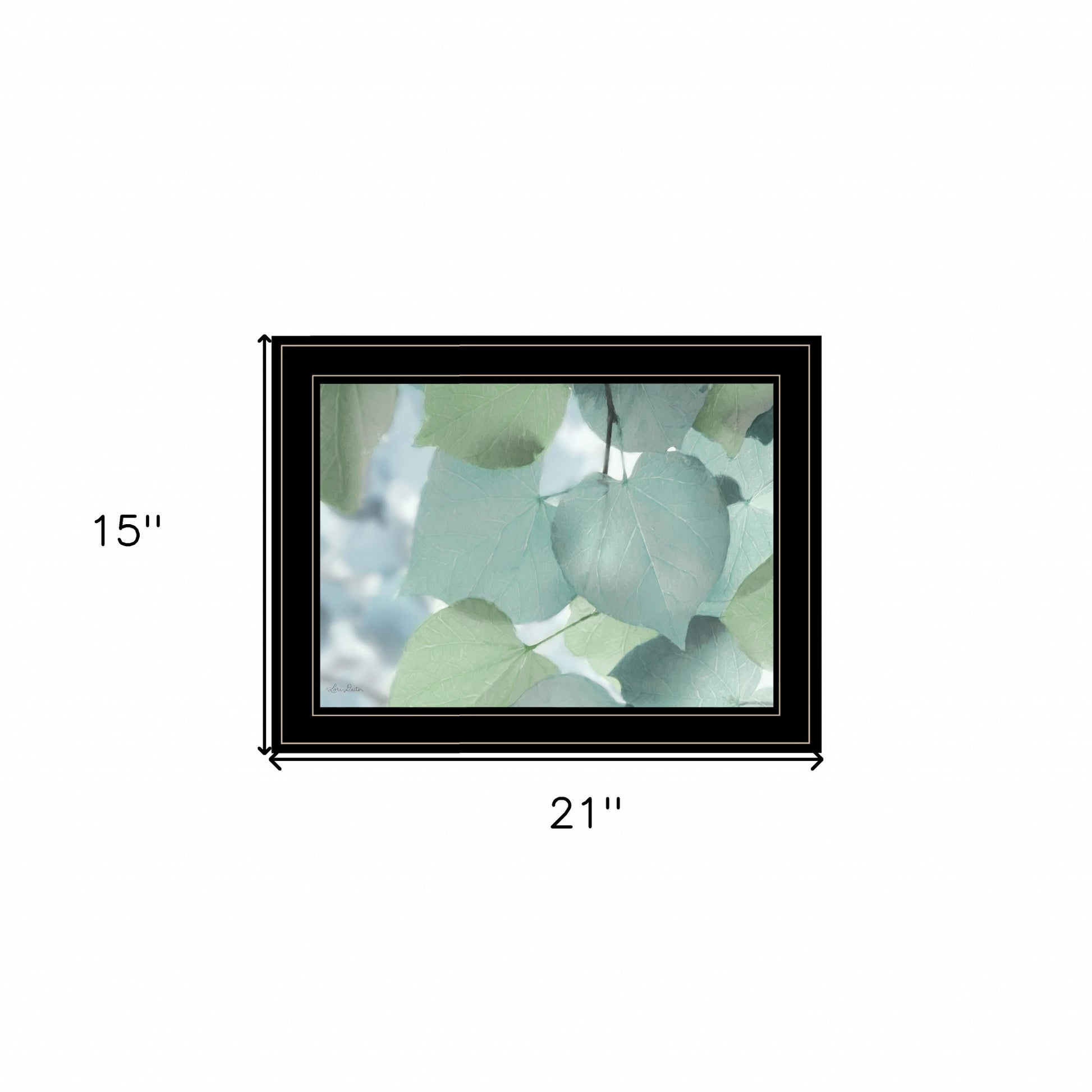Add an air of fashion to your room and rejuvenate the space with this aqua leaves 2 black framed print wall art. This print is a visual artistic expression that allows you to decorate your space in style. Reproduced for you on paper, this hanging decorative accent will be a trendy and fashionable way to dress your walls. Adding this hanging wall art to your space to make your room feel more finished and attractive. Instantly liven up your space with this art that brings color and dimension to your walls. 15 inches H x 21 inches W x 1 inches D