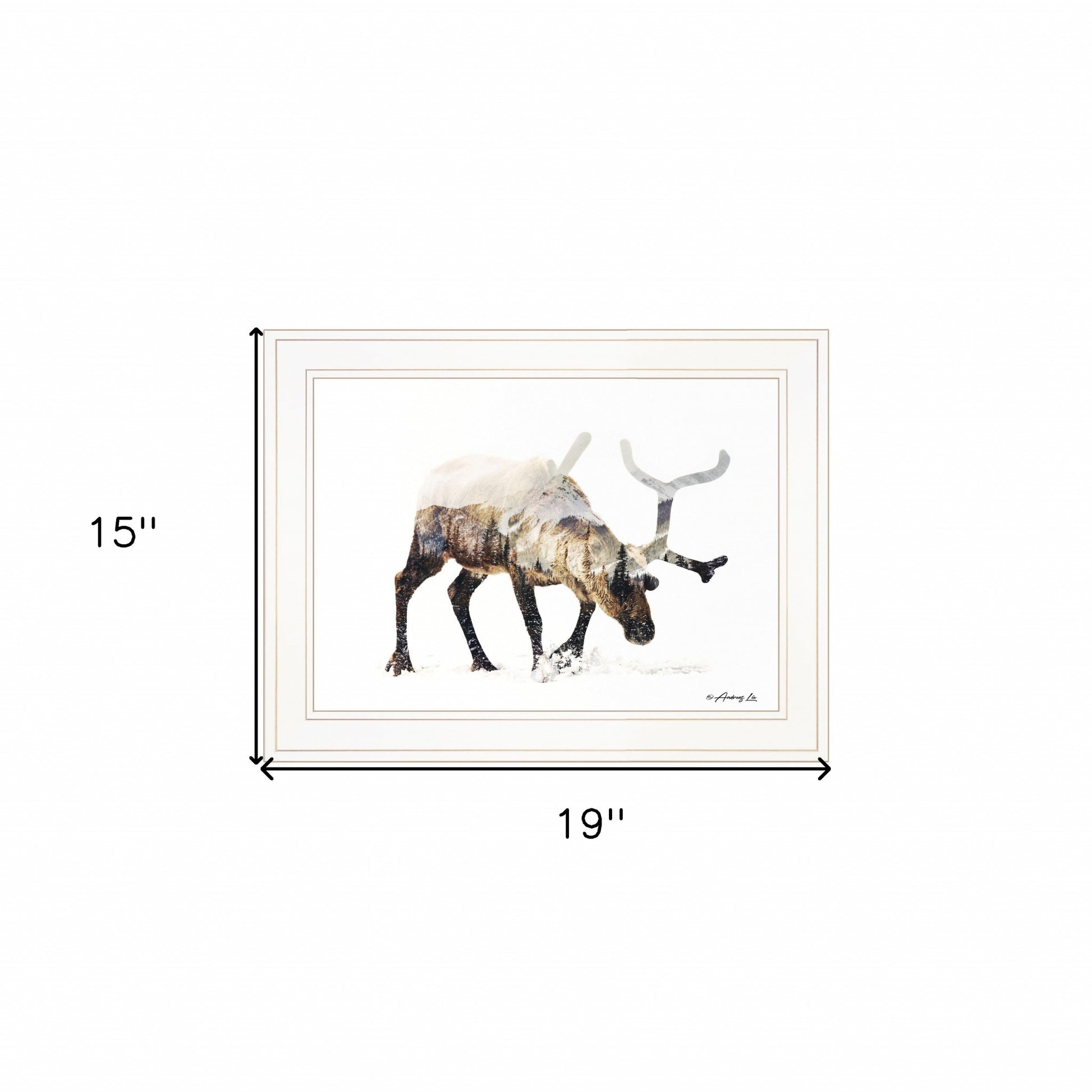 Add an air of fashion to your room and rejuvenate the space with this arctic reindeer 1 white framed print wall art. This print is a visual artistic expression that allows you to decorate your space in style. Reproduced for you on paper, this hanging decorative accent will be a trendy and fashionable way to dress your walls. Adding this hanging wall art to your space to make your room feel more finished and attractive. Utilize this opportunity to create a focal point in the room with this fabulous wall decor option. 15 inches H x 19 inches W x 1 inches D