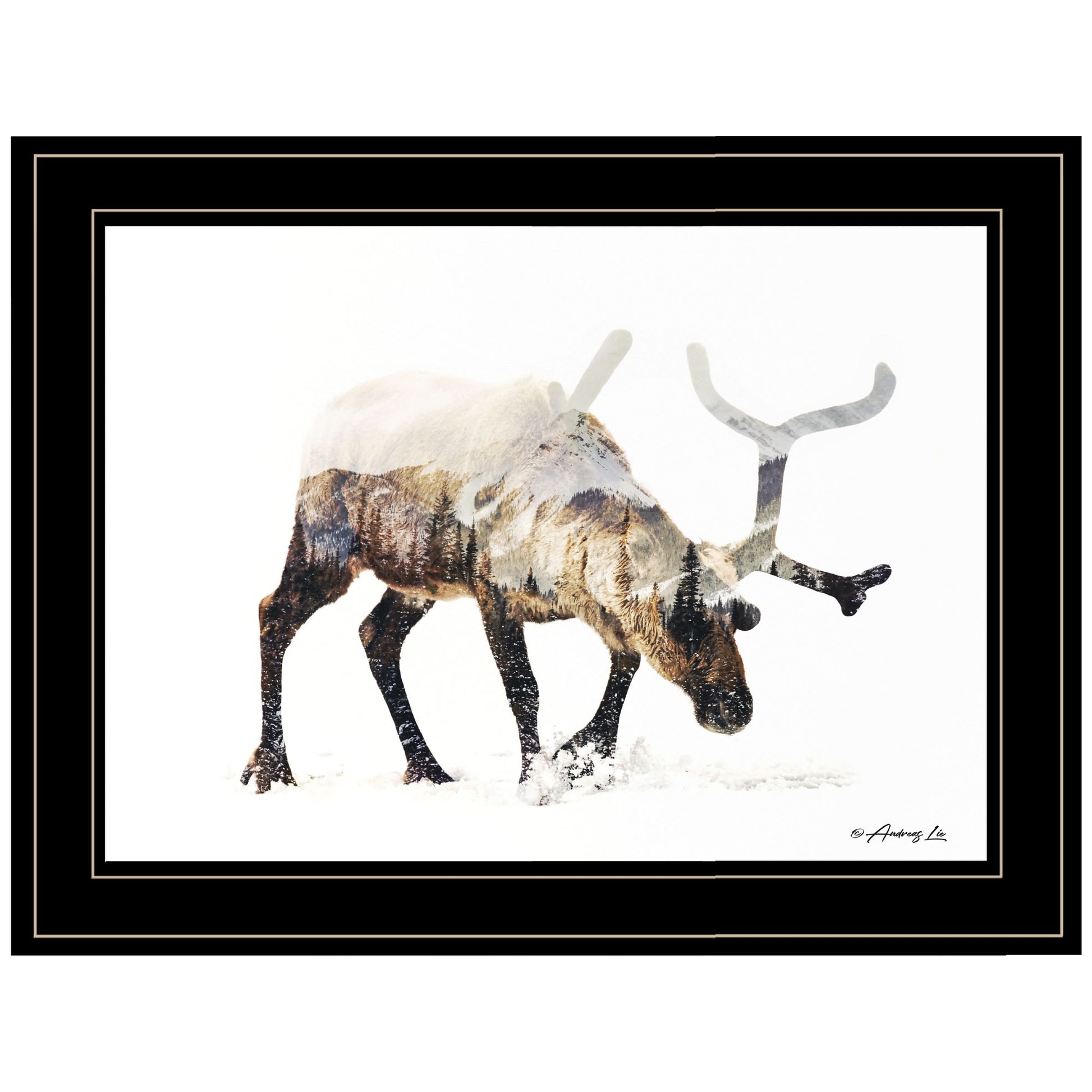 The arctic reindeer 2 black framed print wall art is the perfect decorative accessory for your home. This print is a visual artistic expression that allows you to decorate your space in style. Reproduced for you on paper, this hanging decorative accent will be a trendy and fashionable way to dress your walls. Adding this hanging wall art to your space to make your room feel more finished and attractive. Utilize this opportunity to create a focal point in the room with this fabulous wall decor option. 15 inches H x 19 inches W x 1 inches D