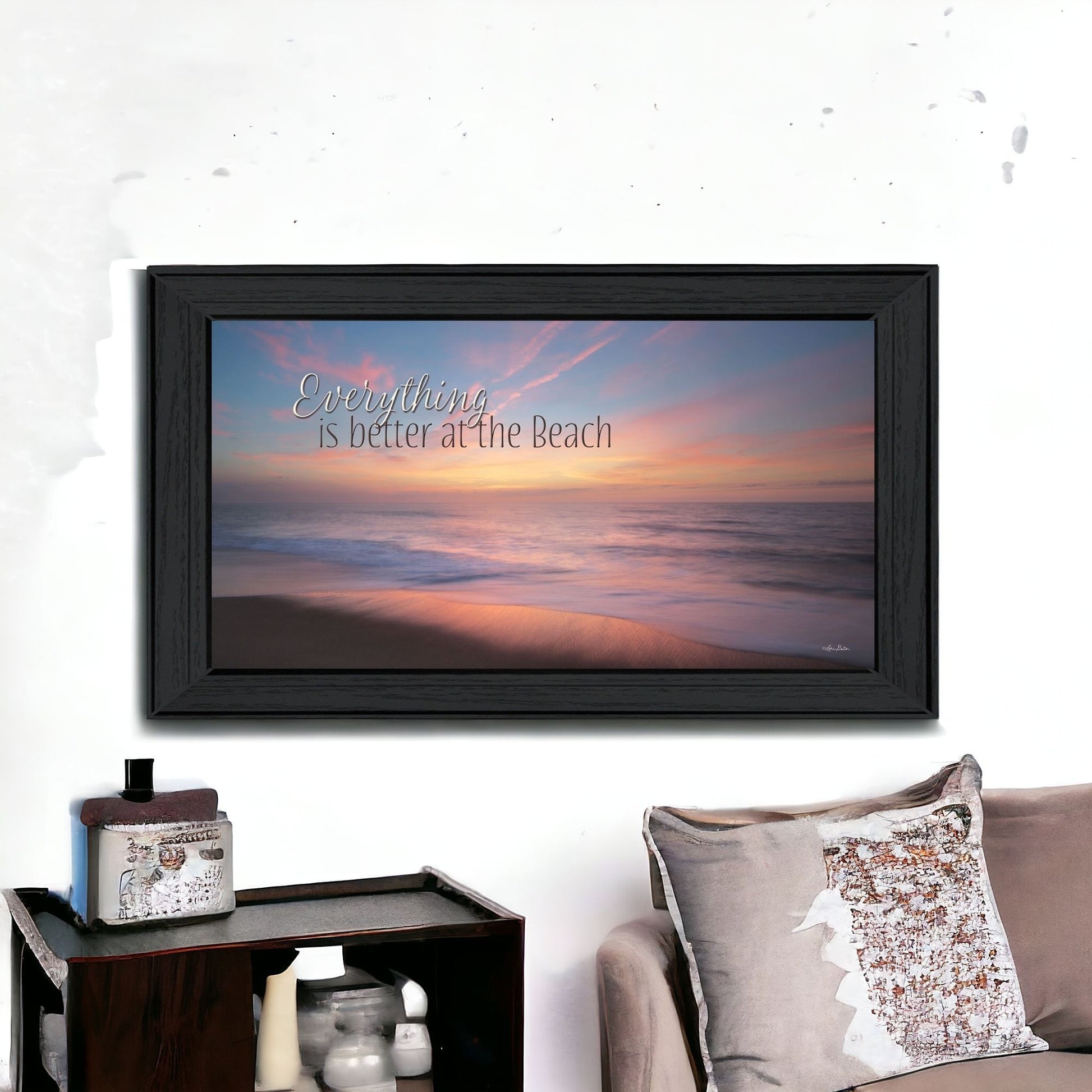 Bring some sizzle to your space with this eye-catching at the beach black framed print wall art. This print is a visual artistic expression that allows you to decorate your space in style. Reproduced for you on paper, this hanging decorative accent will be a trendy and fashionable way to dress your walls. Adding this hanging wall art to your space to make your room feel more finished and attractive. Utilize this opportunity to create a focal point in the room with this fabulous wall decor option. 18 inches H x 20 inches W x 1 inches D