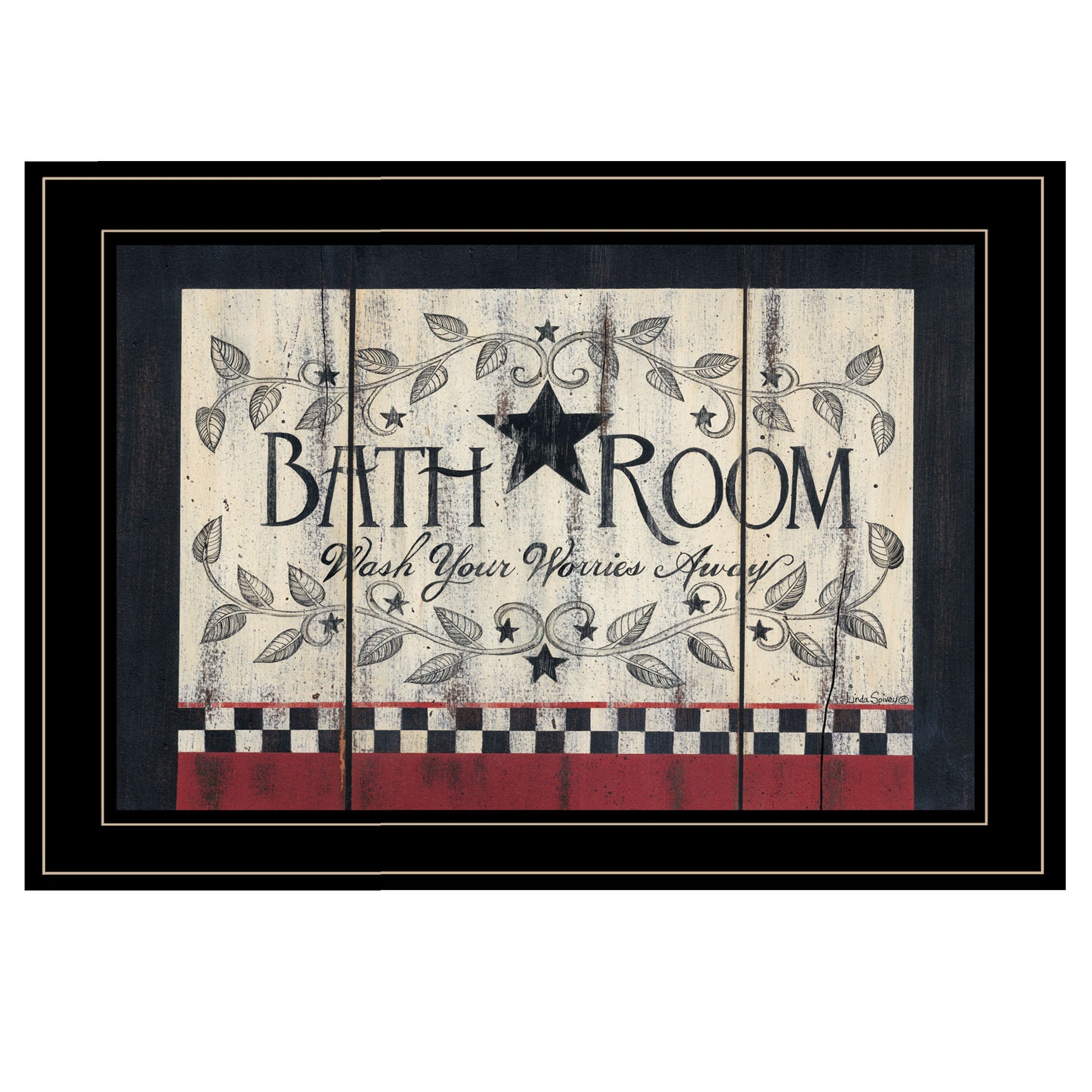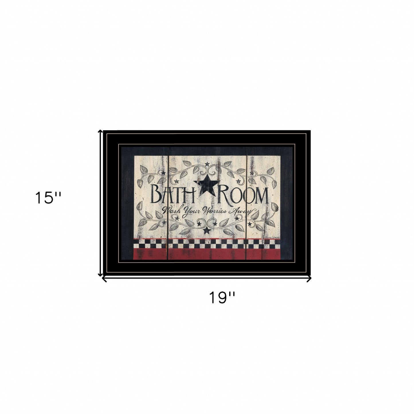 Add an air of fashion to your room and rejuvenate the space with this bath room black framed print wall art. This print is a visual artistic expression that allows you to decorate your space in style. Reproduced for you on paper, this hanging decorative accent will be a trendy and fashionable way to dress your walls. Hang on your wall to add some up to date fashion and decoration. Instantly liven up your space with this art that brings color and dimension to your walls. 15 inches H x 19 inches W x 1 inches D