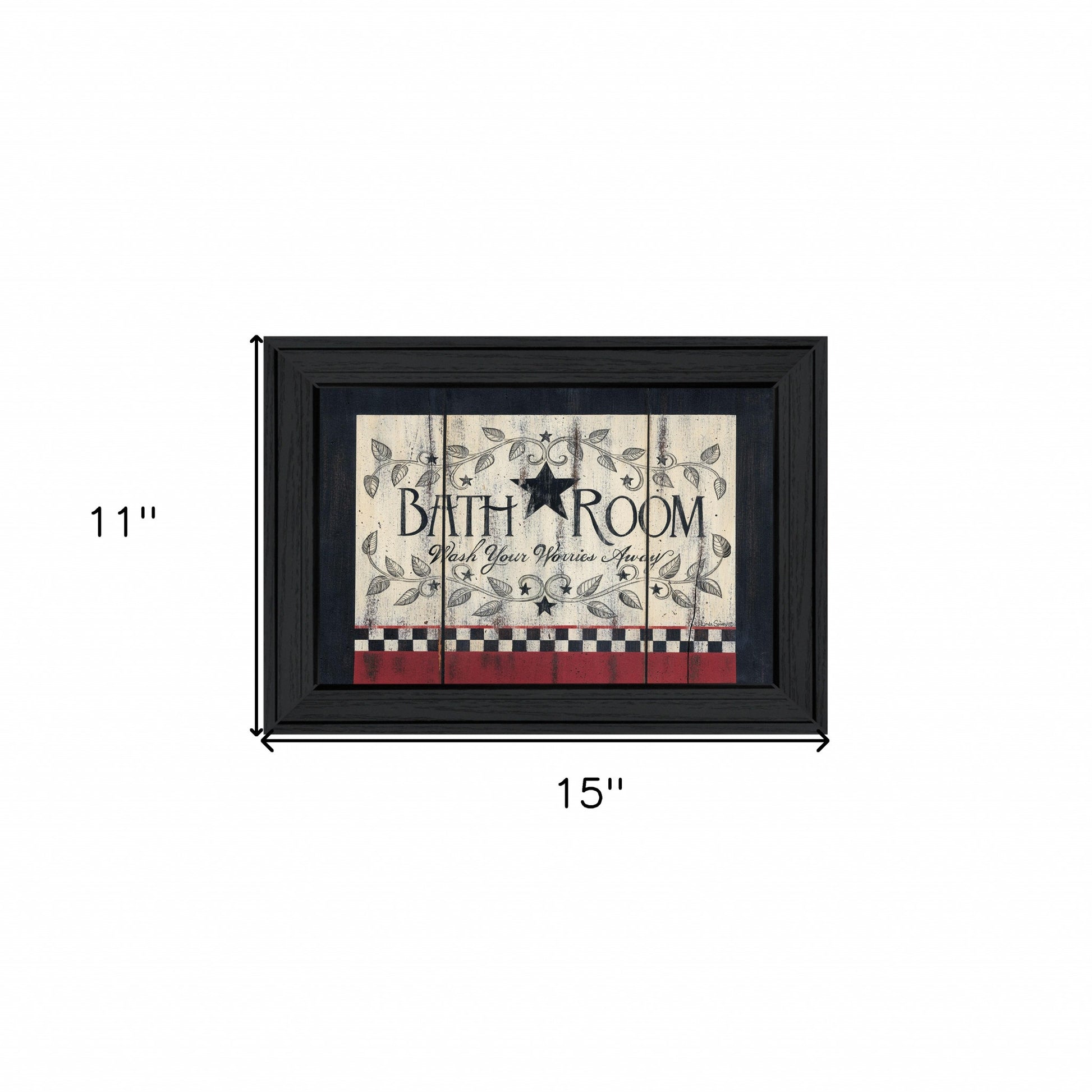 Bring some sizzle to your space with this eye-catching bathroom 4 black framed print wall art. This print is a visual artistic expression that allows you to decorate your space in style. Reproduced for you on paper, this hanging decorative accent will be a trendy and fashionable way to dress your walls. Hang on your wall to add some up to date fashion and decoration. Utilize this opportunity to create a focal point in the room with this fabulous wall decor option. 11 inches H x 15 inches W x 1 inches D