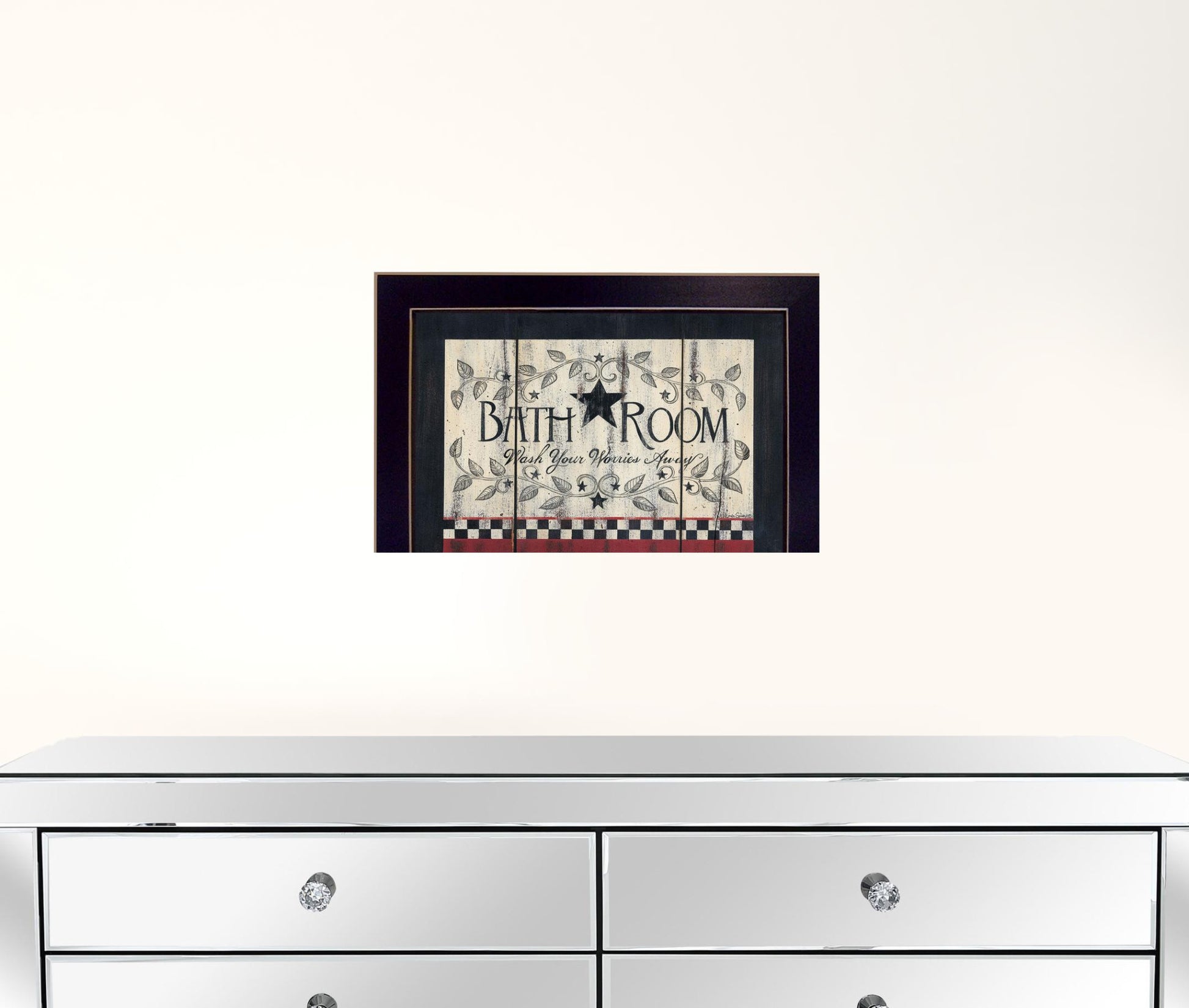 Add an air of fashion to your room and rejuvenate the space with this bathroom 5 black framed print wall art. This print is a visual artistic expression that allows you to decorate your space in style. Reproduced for you on paper, this hanging decorative accent will be a trendy and fashionable way to dress your walls. Hang on your wall to add some up to date fashion and decoration. Instantly liven up your space with this art that brings color and dimension to your walls. 10 inches H x 14 inches W x 1 inches D