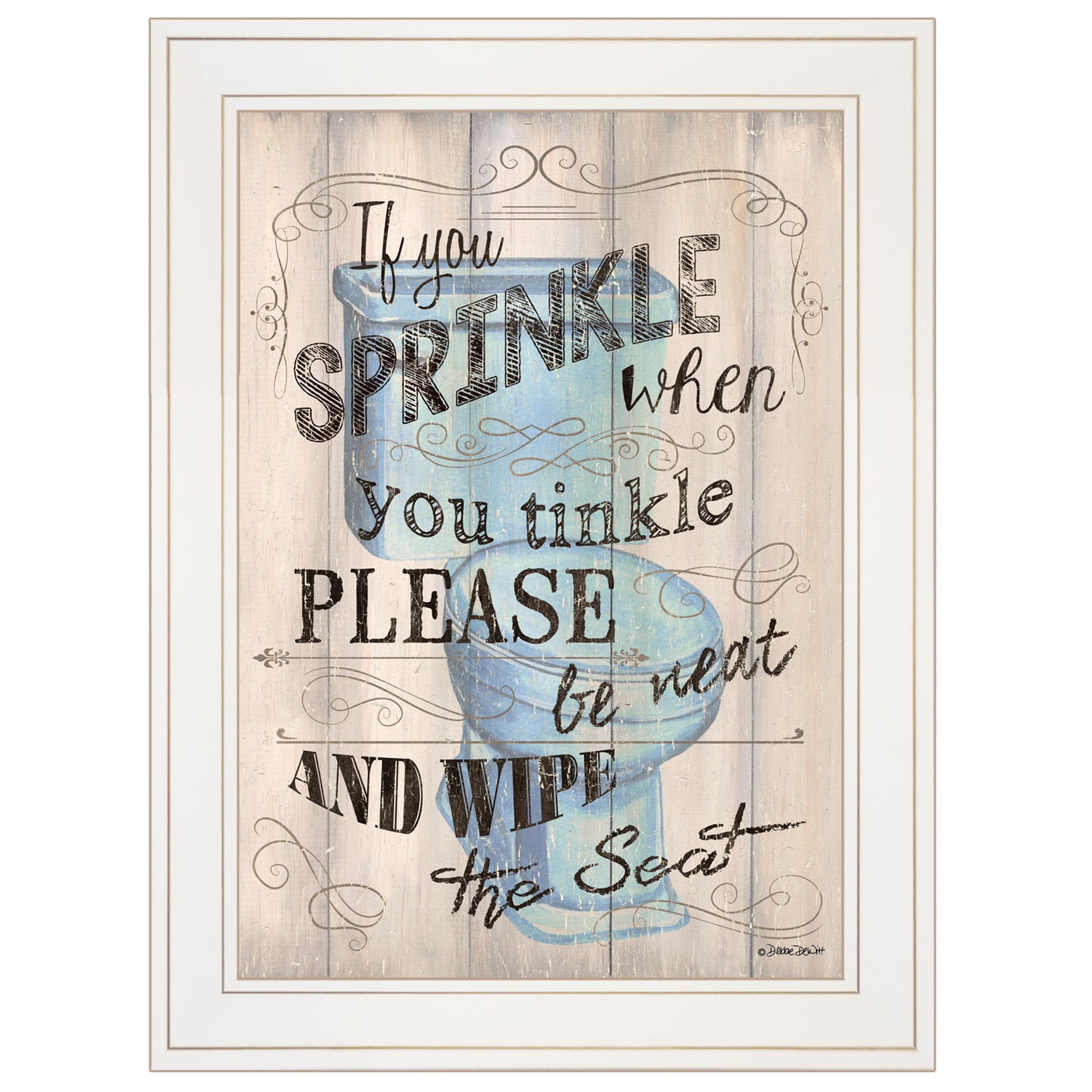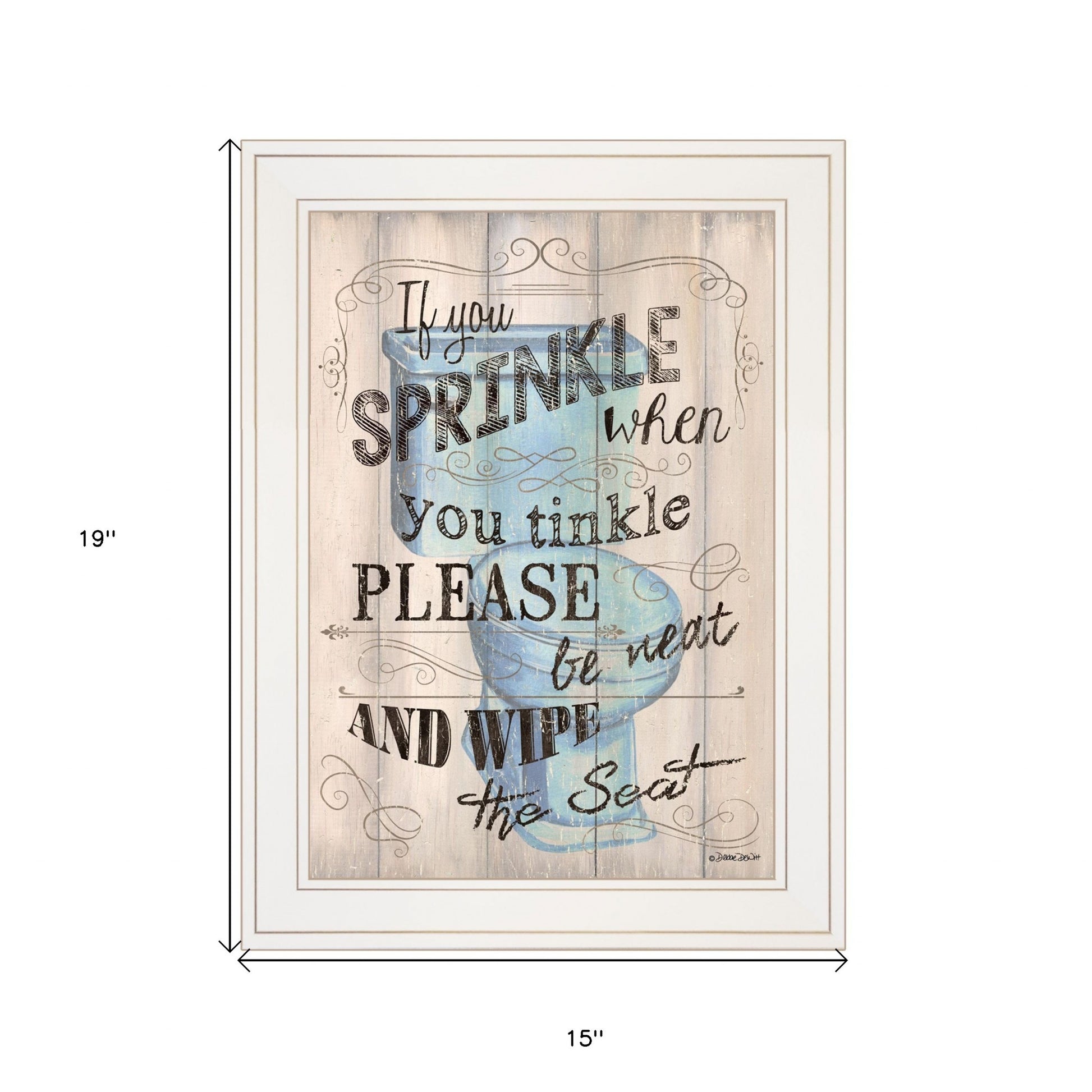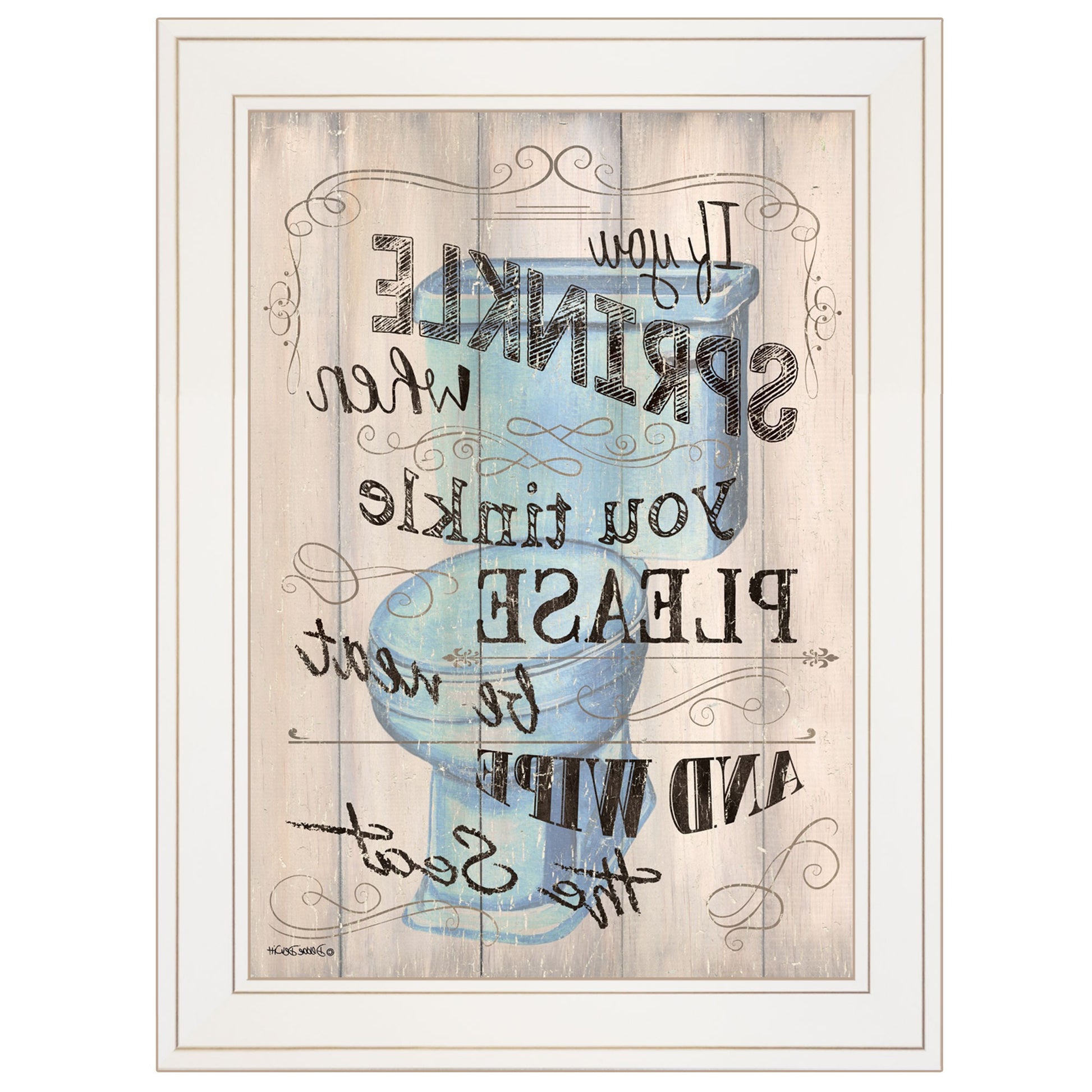 Unique and decorative, this bathroom humor 5 white framed print wall art will leave a lasting impression. This print is a visual artistic expression that allows you to decorate your space in style. Reproduced for you on paper, this hanging decorative accent will be a trendy and fashionable way to dress your walls. Hang on your wall to add some up to date fashion and decoration. Instantly liven up your space with this art that brings color and dimension to your walls. 19 inches H x 15 inches W x 1 inches D