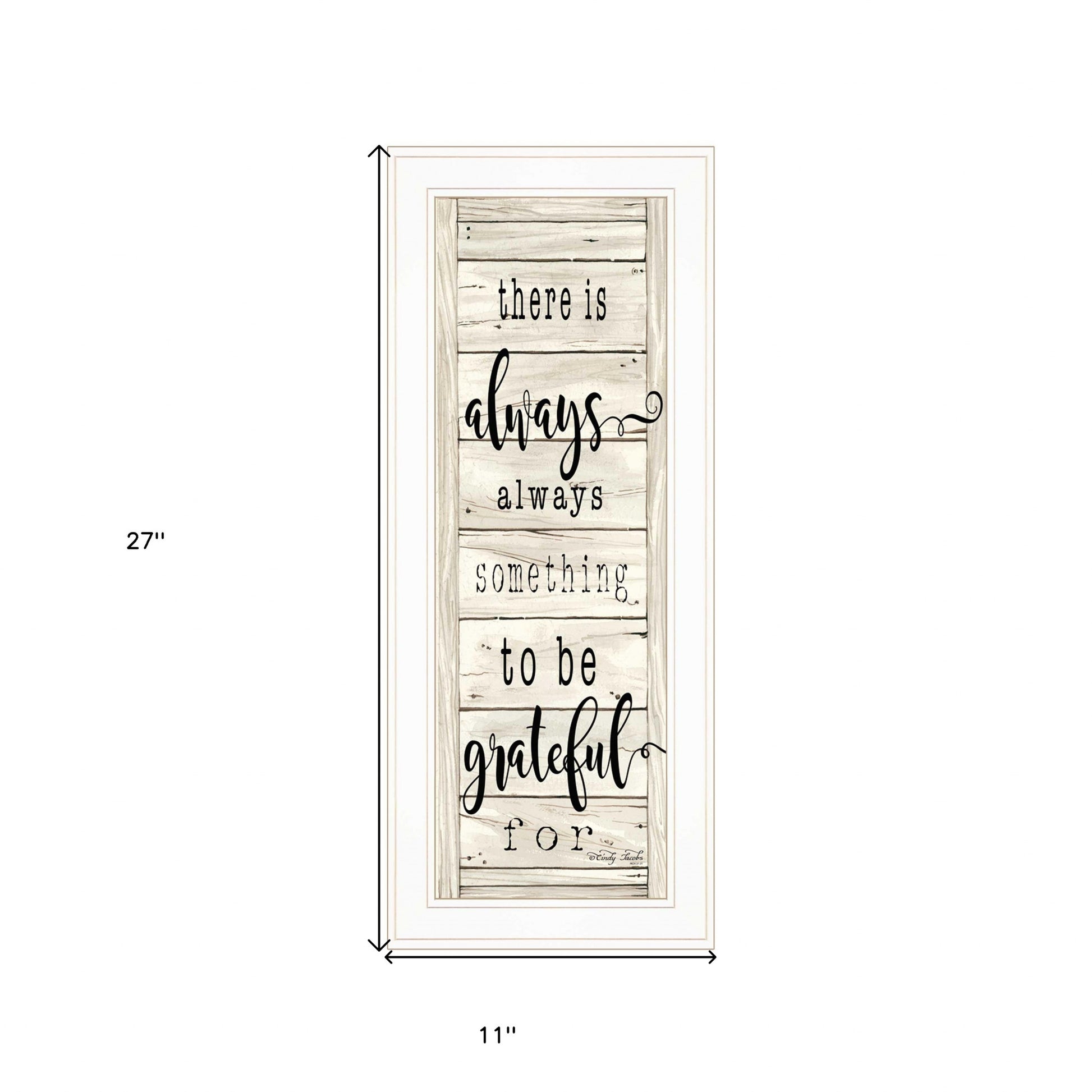 Add an air of fashion to your room and rejuvenate the space with this be grateful collection 1 white framed print wall art. This print is a visual artistic expression that allows you to decorate your space in style. Reproduced for you on paper, this hanging decorative accent will be a trendy and fashionable way to dress your walls. Hang on your wall to add some up to date fashion and decoration. Instantly liven up your space with this art that brings color and dimension to your walls. 27 inches H x 11 inches W x 1 inches D
