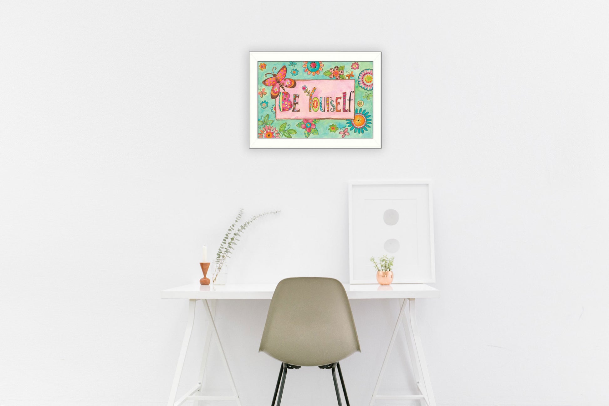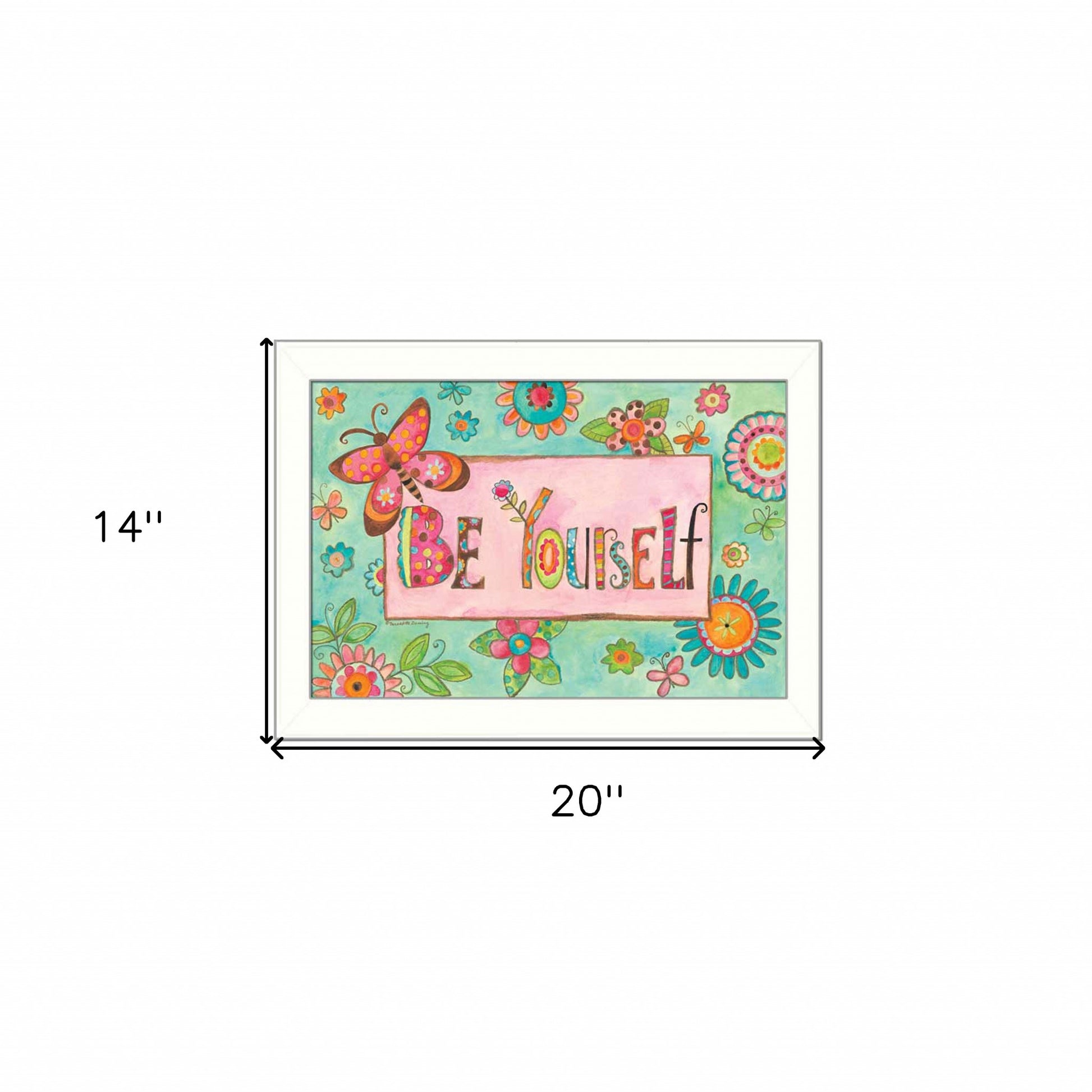 The be yourself pink motivational white framed print wall art is the perfect decorative accessory for your home. This print is a visual artistic expression that allows you to decorate your space in style. Reproduced for you on paper, this hanging decorative accent will be a trendy and fashionable way to dress your walls. Hang on your wall to add some up to date fashion and decoration. Utilize this opportunity to create a focal point in the room with this fabulous wall decor option. 20 inches H x 14 inches W x 1 inches D
