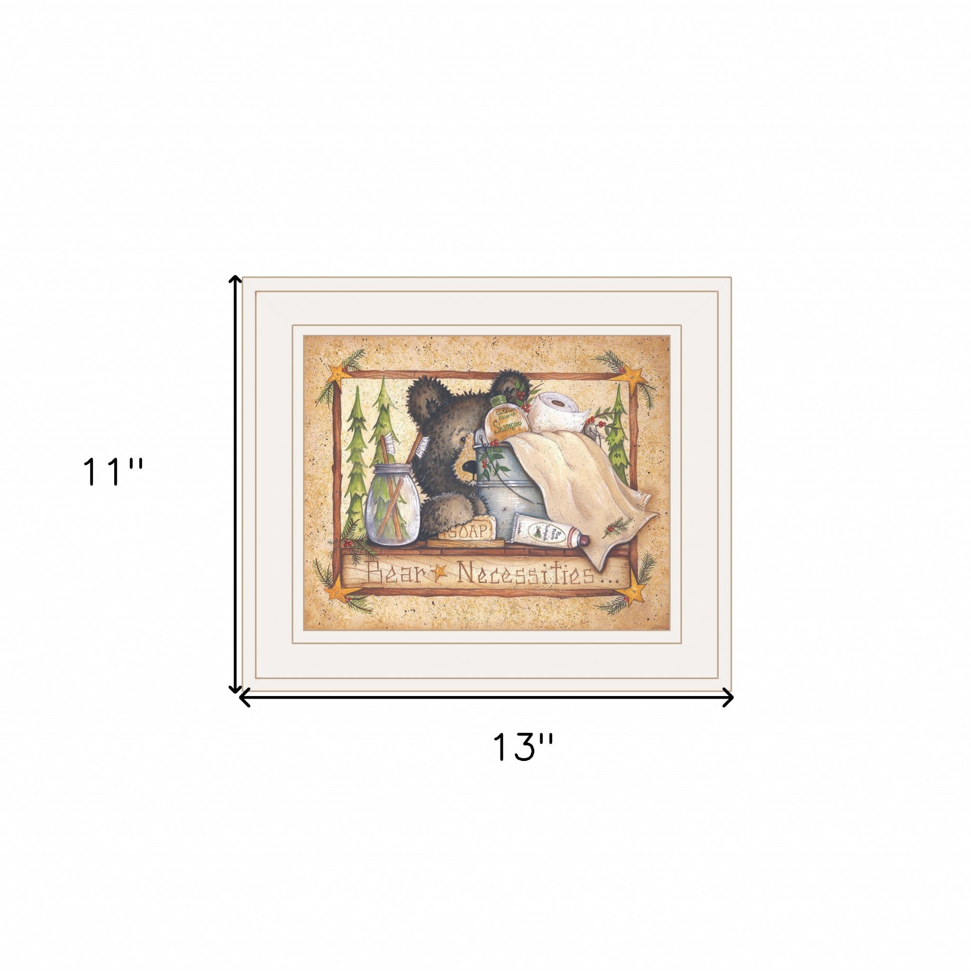 Bring some sizzle to your space with this eye-catching bear necessities getting ready white framed print wall art. This print is a visual artistic expression that allows you to decorate your space in style. Reproduced for you on paper, this hanging decorative accent will be a trendy and fashionable way to dress your walls. Adding this hanging wall art to your space to make your room feel more finished and attractive. Instantly liven up your space with this art that brings color and dimension to your walls. 11 inches H x 13 inches W x 1 inches D