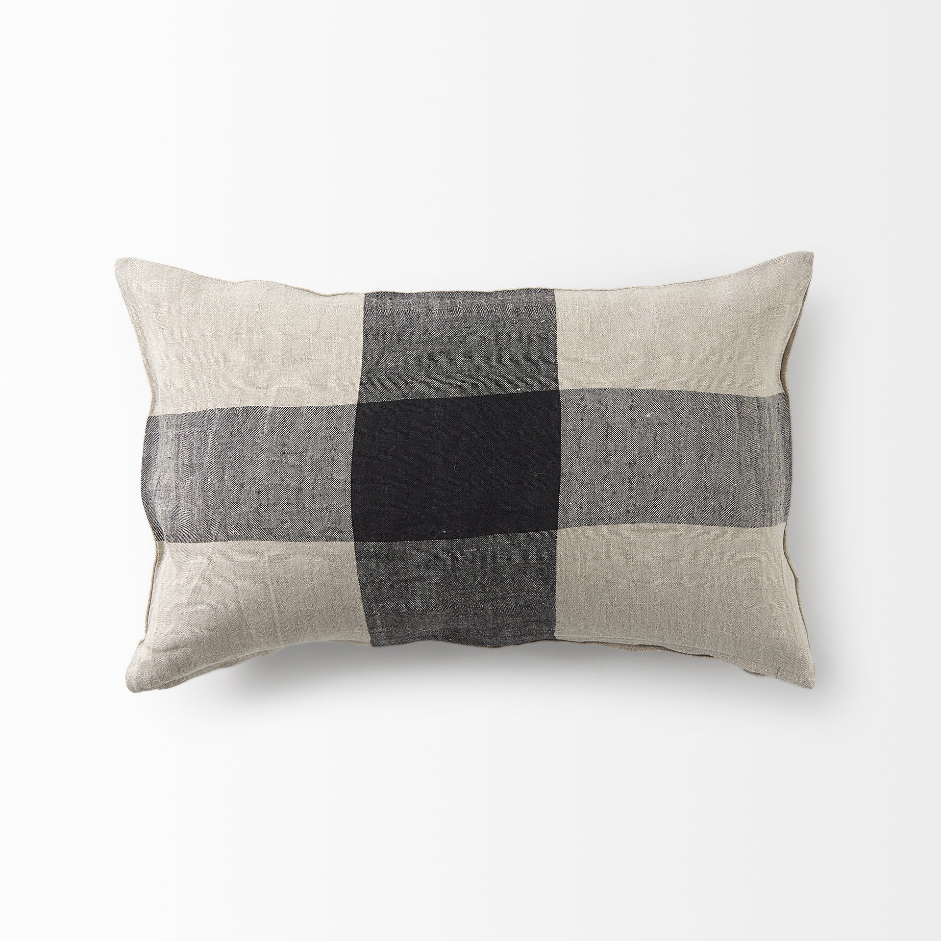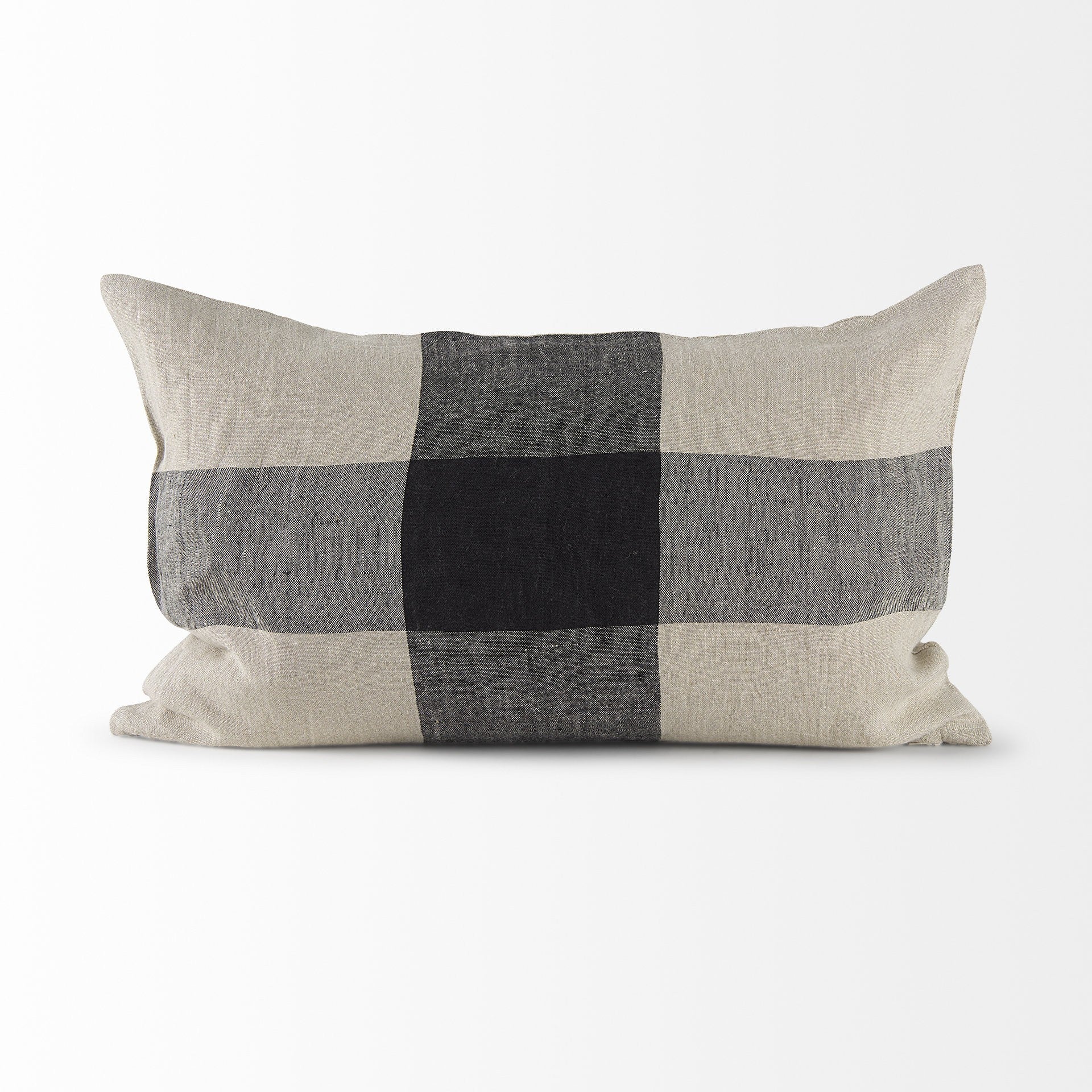 Beige And Black Plaid Pattern Lumbar Throw Pillow Cover