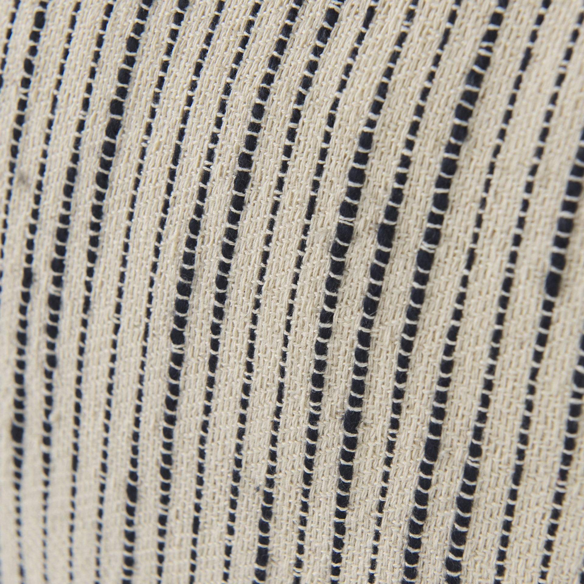 With this Beige and Midnight Pom Pom Square Accent Pillow Cover you can add the perfect finishing touch to your space. This cushion cover is made highly durable and soft textured fabrics material that provide comfort beyond measure. The design features a woven striped design in a beige and midnight colorway with midnight pom poms on all four corners of the cover. Zip closure that ensures your cushion stays in there securely. The neutral color palette will look great on top of any couch, bed or chair you have and go with any interior style you have in your home. 18" H x 18" W x 1" D
