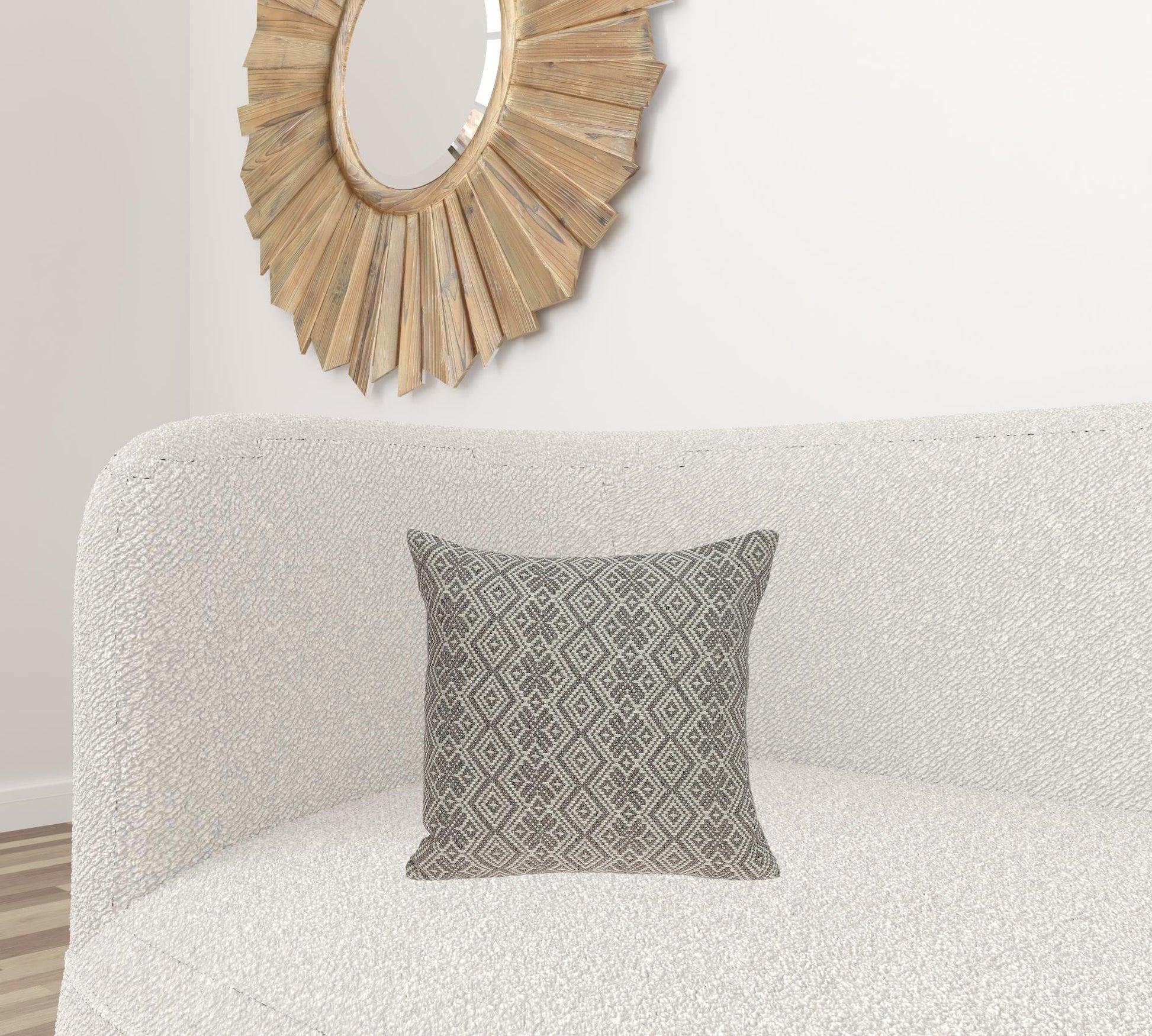 Looking to update your furnishings with something simple yet elegant? The Beige and Mocha Throw Pillow will do the trick! The rich, medium brown base of the mocha-colored design highlights on the beige pillow gives it a simple yet sophisticated look for a throw pillow. The geometric patterns in mocha treading throughout the front of the pillow make it a perfect elegant addition to your furniture. This fluffy decorative pillow is 100% cotton and has solid beige canvas and convenient zipper closure on the back. 16” x 16” x 5”