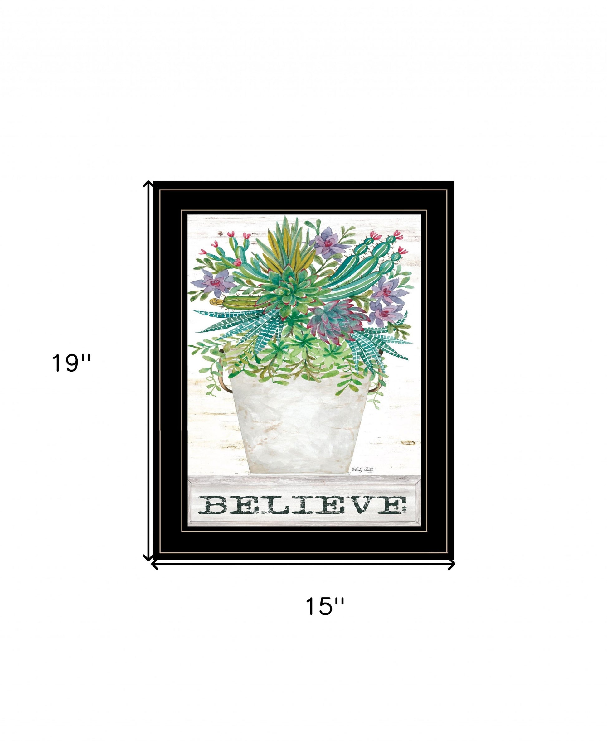 Add an air of fashion to your room and rejuvenate the space with this believe succulents 3 black framed print wall art. This print is a visual artistic expression that allows you to decorate your space in style. Reproduced for you on wood, this hanging decorative accent will be a trendy and fashionable way to dress your walls in a rustic and modern farmhouse vibe. Hang on your wall to add some up to date fashion and decoration. Instantly liven up your space with this art that brings color and dimension to your walls. 19 inches H x 15 inches W x 1 inches D