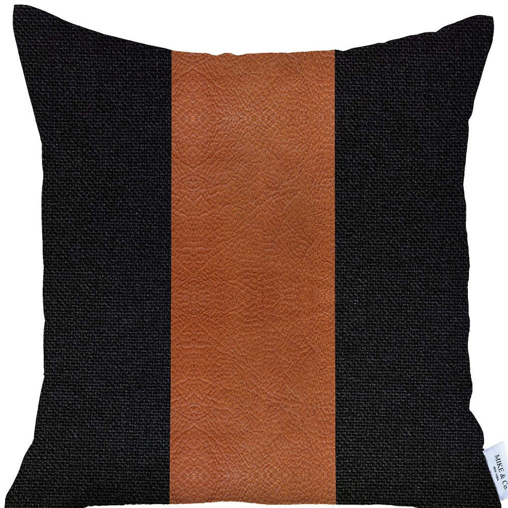 Instantly allure the gaze of the guests with this stunning White and Brown Strap Faux Leather Pillow that accentuates modern artistry with a touch of Bohemian stress. Flaunting a square-shaped raven black base with a bright brown vegan faux leather strap in the middle for visual contrast. Carefully crafted by Turkish artisans, this unique pillow sports high-quality polyester material and 100% vegan faux leather for optimum durability, color intensity, and easy cleaning. This pillow is made from OEKO-TEX Standard 100 certified fabric to ensure product quality and safety. It comes with a high-quality pillow insert and a hidden zipper closure all around for a seamless finish and maximum comfort. Adorn your living space with this exclusively designed decorative throw pillow and your interior will never go out of style. 18” x 18” x 1”