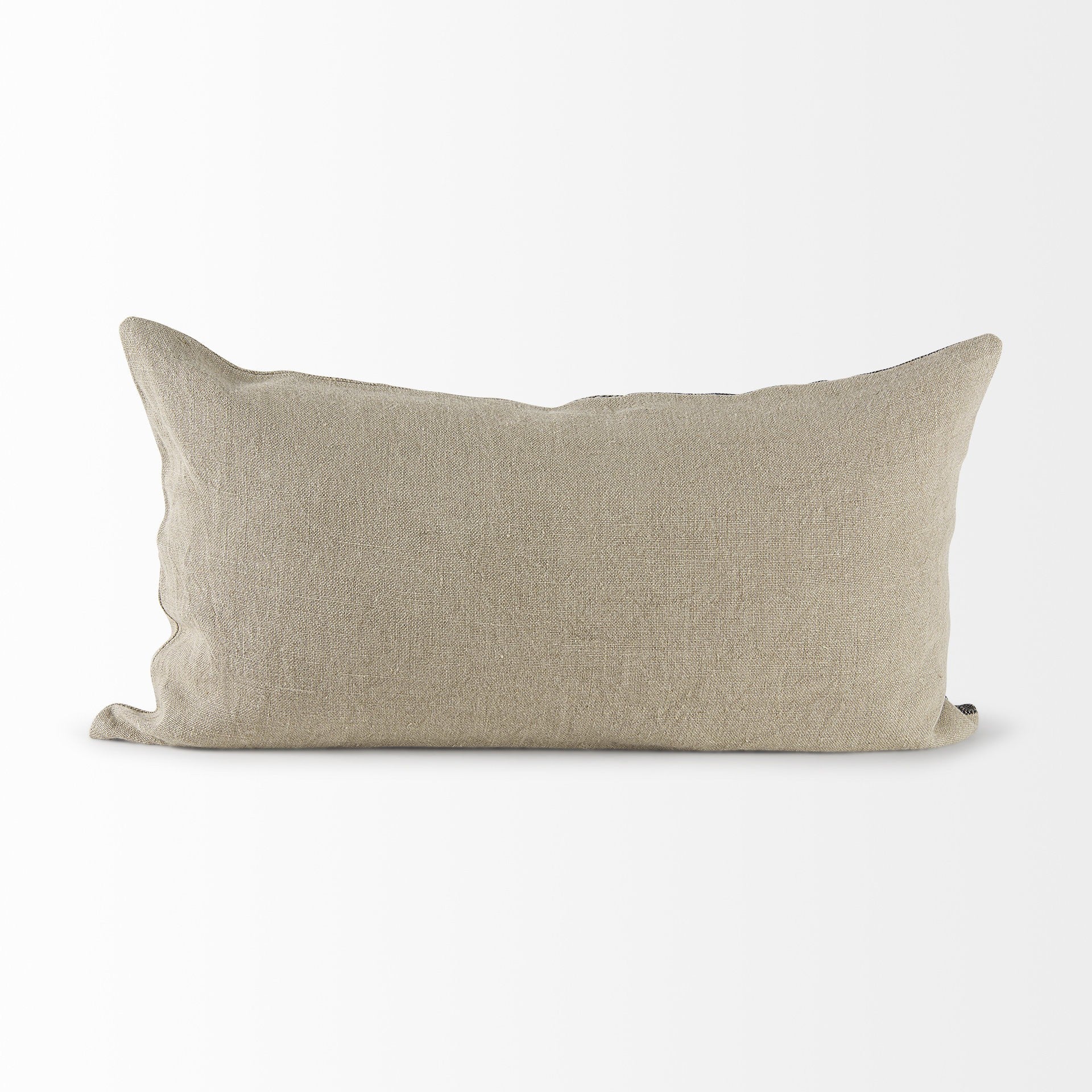 With this Black and Gray Two Tone Lumbar Pillow coveryou can add the perfect finishing touch to your couch. This Pillow cover is made highly durable and soft linen material that provides comfort beyond measure. This Pillow cover has a two tone design with one side in a light gray color and the other side in a black stonewash color. Between the two colors there is a chevron line in the same colors. The back has a zip closure that ensures your Pillow stays in there securely. The neutral color palette will look great on top of any couch, bed or chair you have and go with any interior style you have in your home. This Pillow cover shape is also great for extra back support. 1" H x 26" W x 14" D