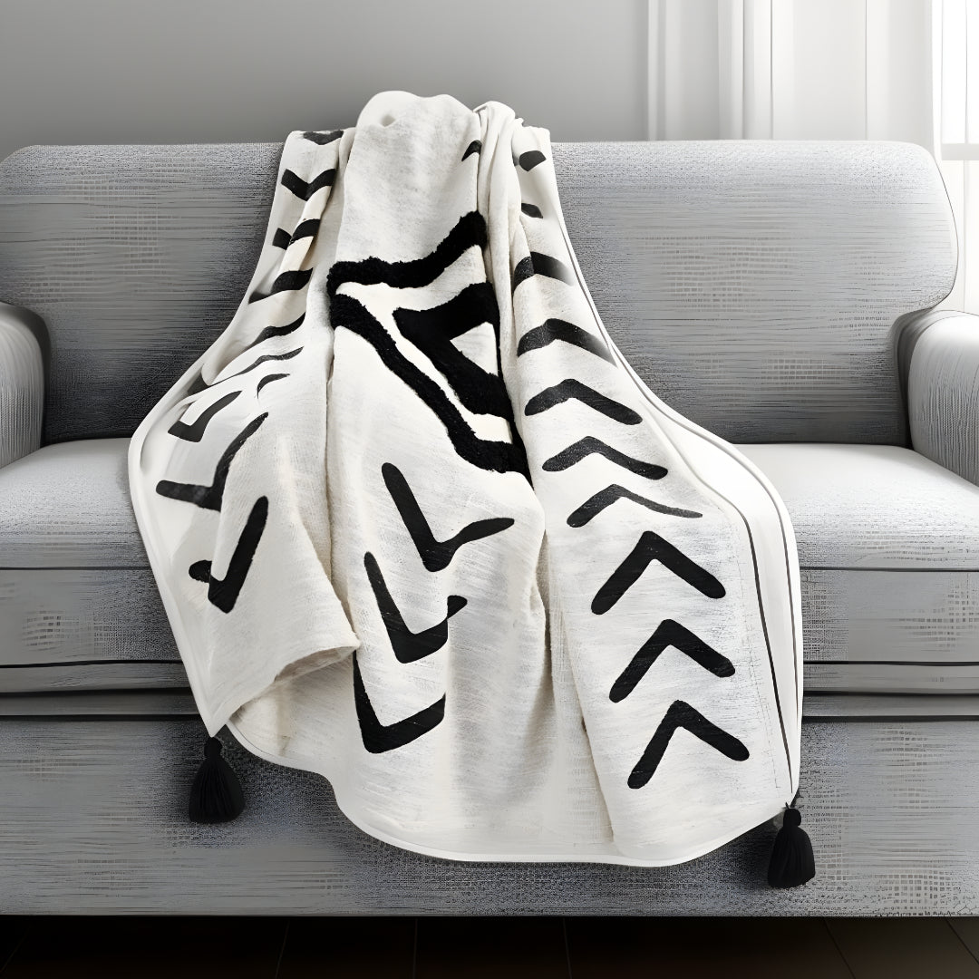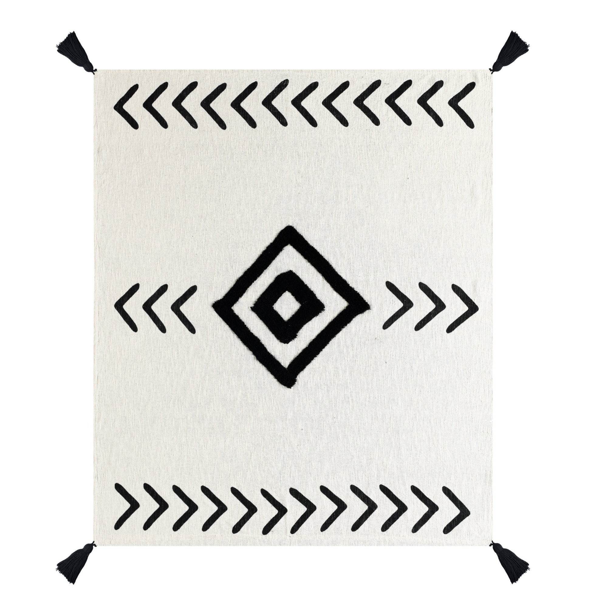 This black and white woven cotton geometric throw blanket is a stylish addition to any sofa. Features a woven geometric design that offers sumptuous softness and texture that you'll cherish for years to come. Made from cotton this blanket will make a great addition to any room it's added to. Add extra texture to your decor and turn your room into an inviting space. This cozy throw blanket makes the perfect add-on to movie nights and lazy afternoons. 0.2" H x 50" W x 60" D