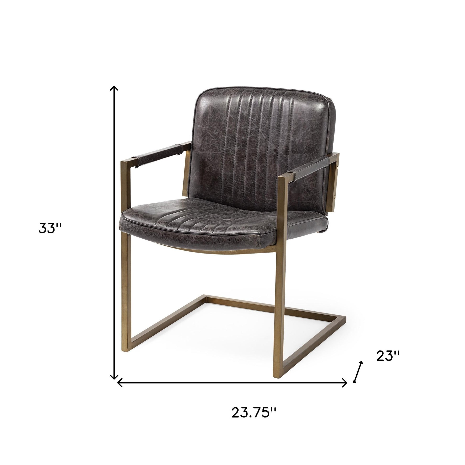 Black Leather Seat Accent Chair with Brass Frame|A stylish accent chair that flaunts leather seating braced by a sturdy, powder-coated metal frame.