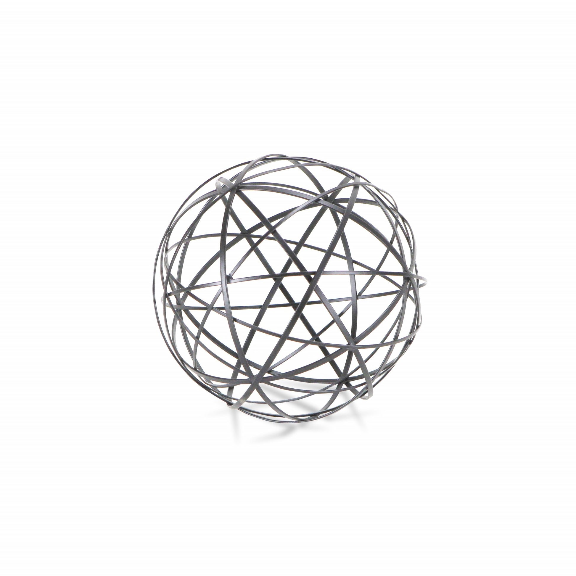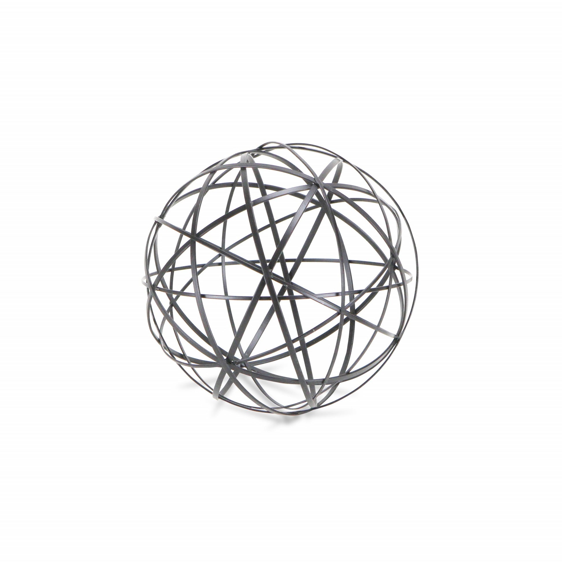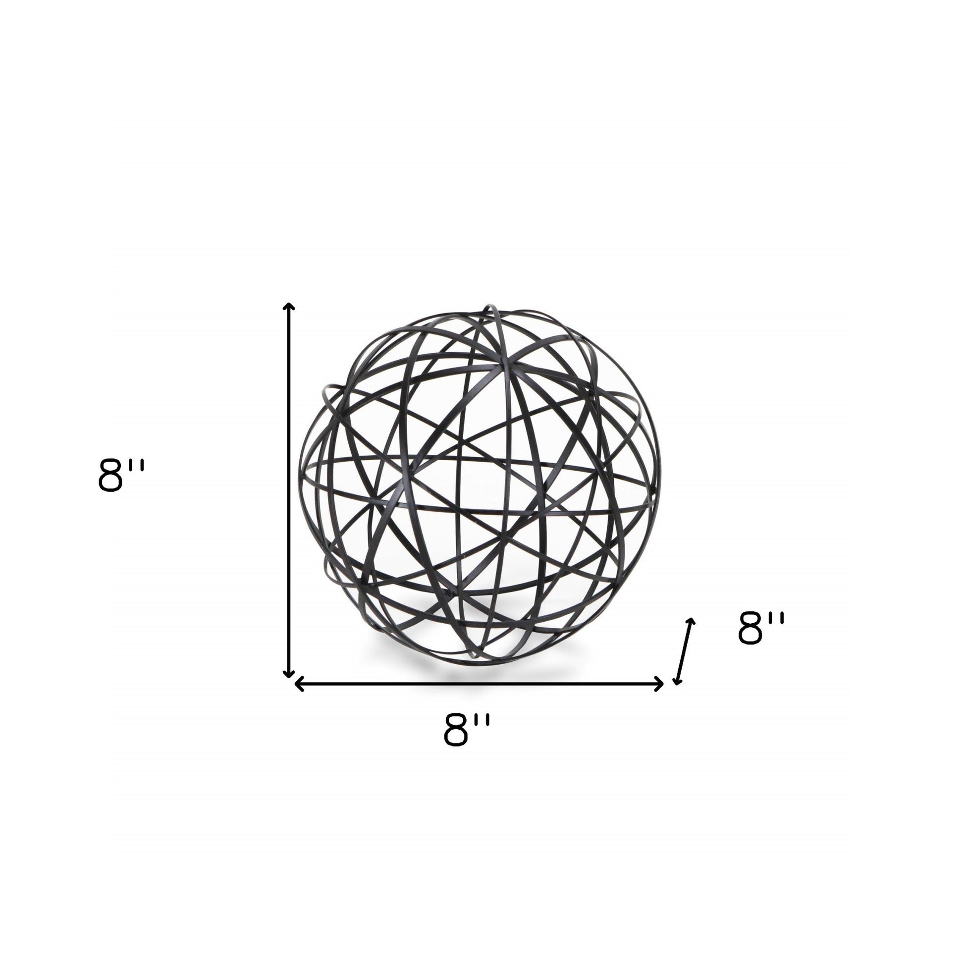 The perfect way to add a touch of contemporary design to your home, this Black Metal Wire Ball Decorative Sculpture is made from solid metal and is finished to black color. The ball shape is made of intricate metal wires in varying sizes which intersect and create new smaller shapes adding a nice depth to the overall look. Use this decor piece on its own anywhere in your home or group it up with similar pieces you have in your bookshelf, your coffee table, or even on your entryway table. 8" H x 8" W x 8" D