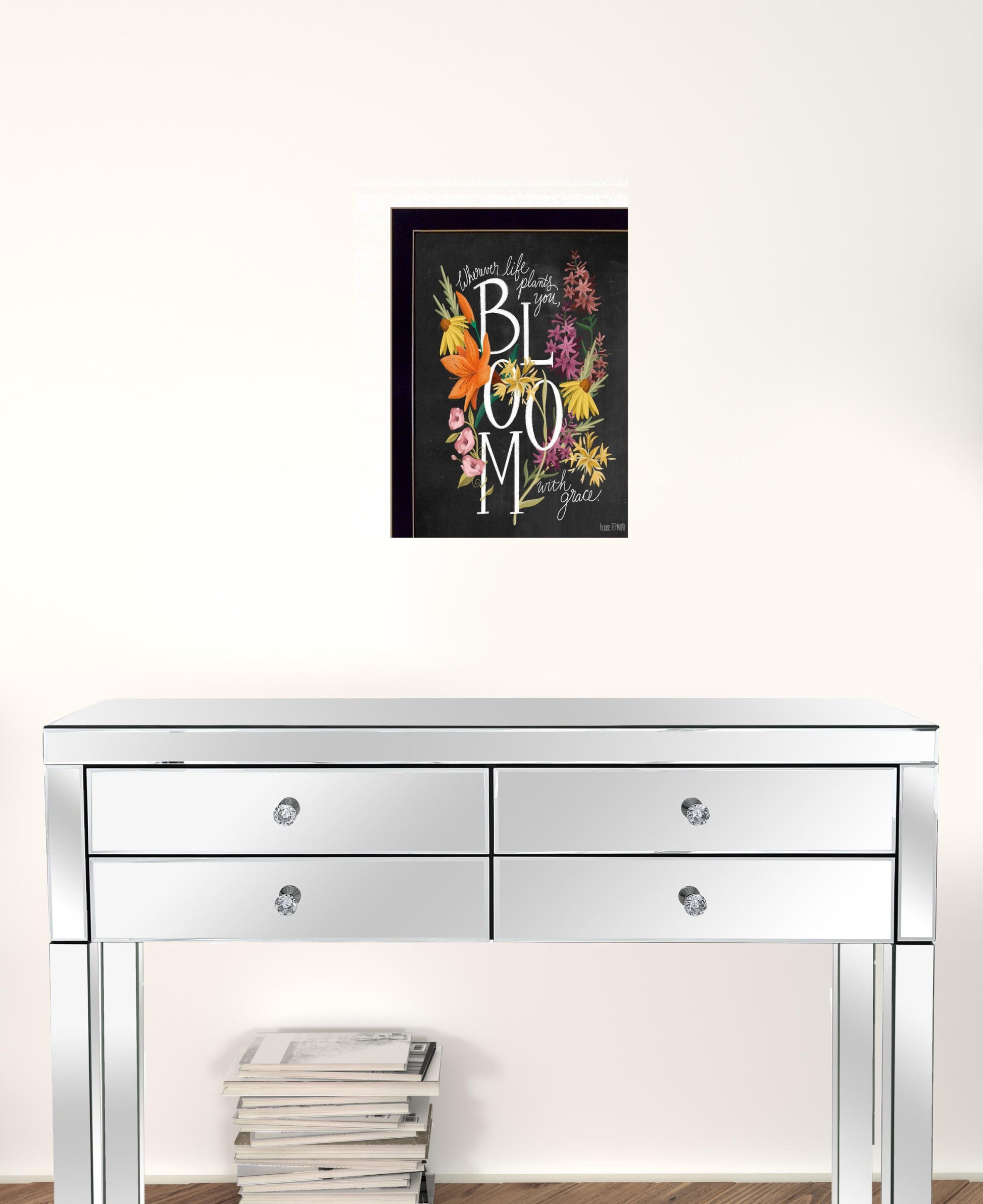 Bring some sizzle to your space with this eye-catching bloom with grace 1 black framed print wall art. This print is a visual artistic expression that allows you to decorate your space in style. Reproduced for you on wood, this hanging decorative accent will be a trendy and fashionable way to dress your walls in a rustic and modern farmhouse vibe. Hang on your wall to add some up to date fashion and decoration. Utilize this opportunity to create a focal point in the room with this fabulous wall decor option. 18 inches H x 14 inches W x 1 inches D
