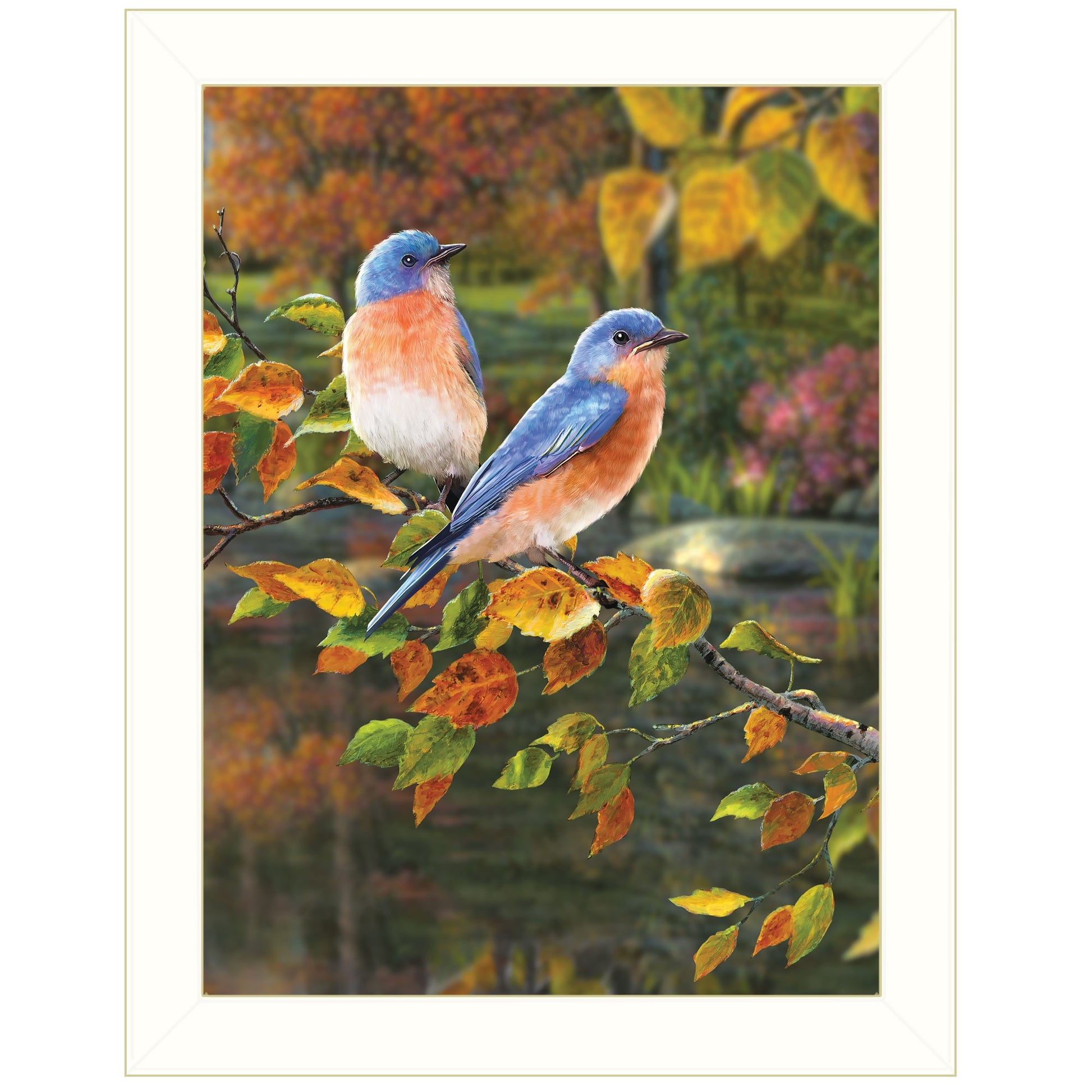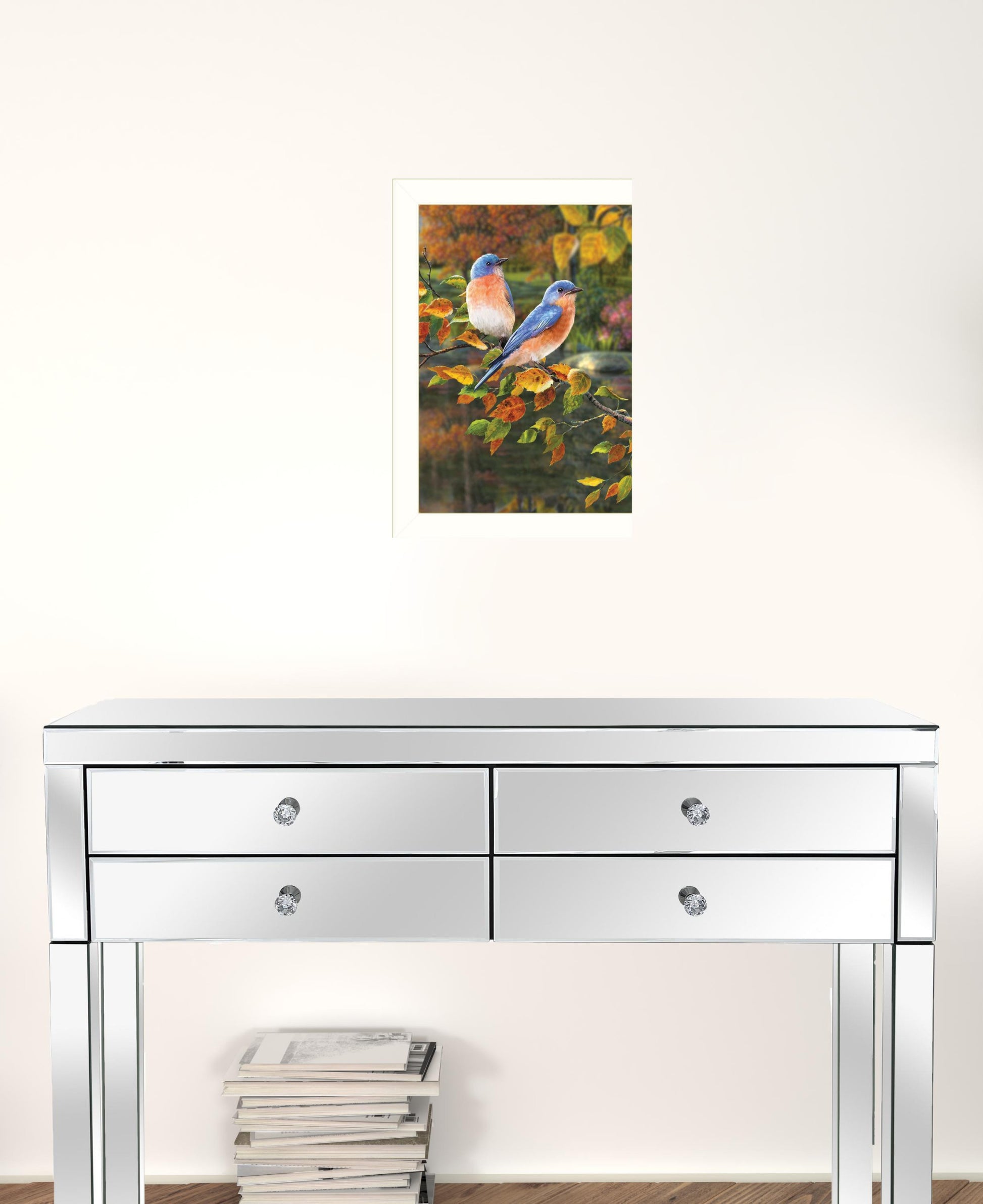 The bluebirds 2 white framed print wall art is the perfect decorative accessory for your home. This print is a visual artistic expression that allows you to decorate your space in style. Reproduced for you on paper, this hanging decorative accent will be a trendy and fashionable way to dress your walls. Adding this hanging wall art to your space to make your room feel more finished and attractive. Instantly liven up your space with this art that brings color and dimension to your walls. 18 inches H x 14 inches W x 1 inches D