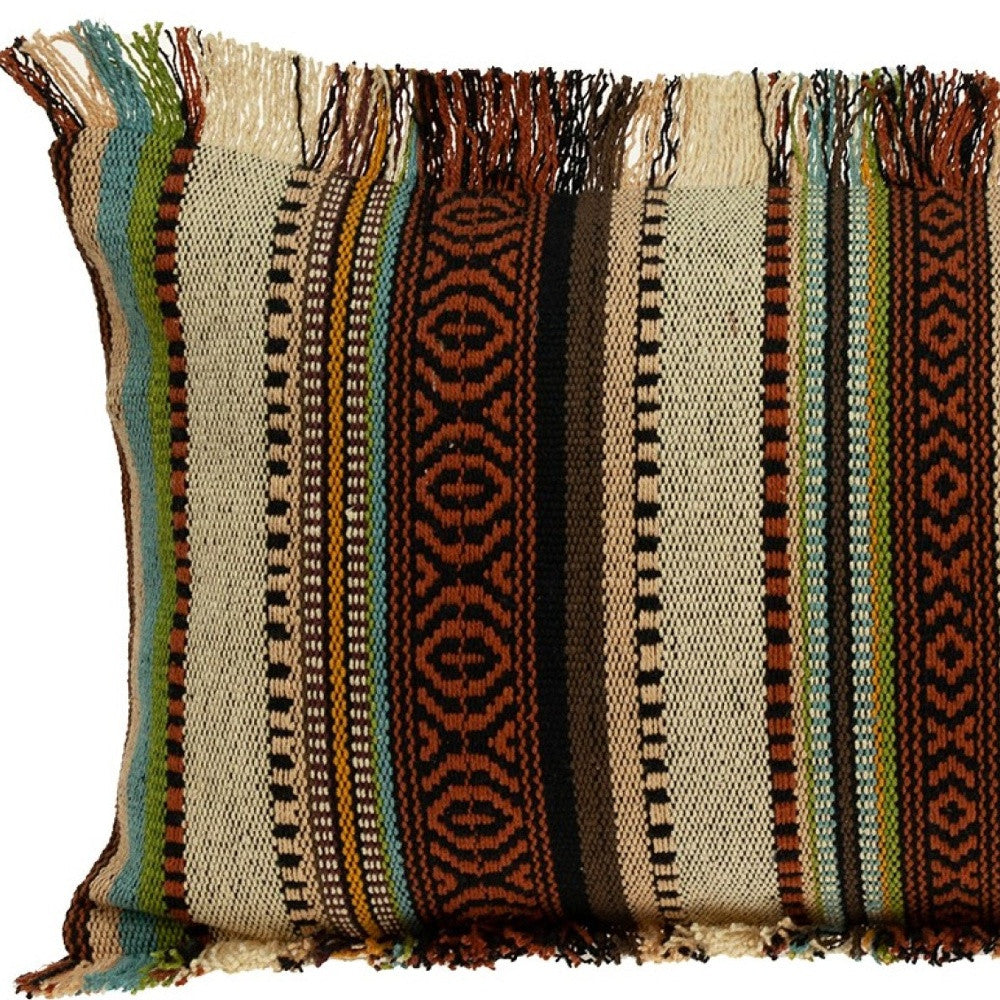 Updating your interior? The Bohemian Fringe Throw Pillow will add a personalized style to your furniture with its different layers of colors and textures. Made of 100% cotton, the highlight of this throw pillow is most certainly the combination of multiple warm colors, patterns, and textures. This design makes it a go-to choice for people looking for unique decorating accents. 24” x 14” x 5”