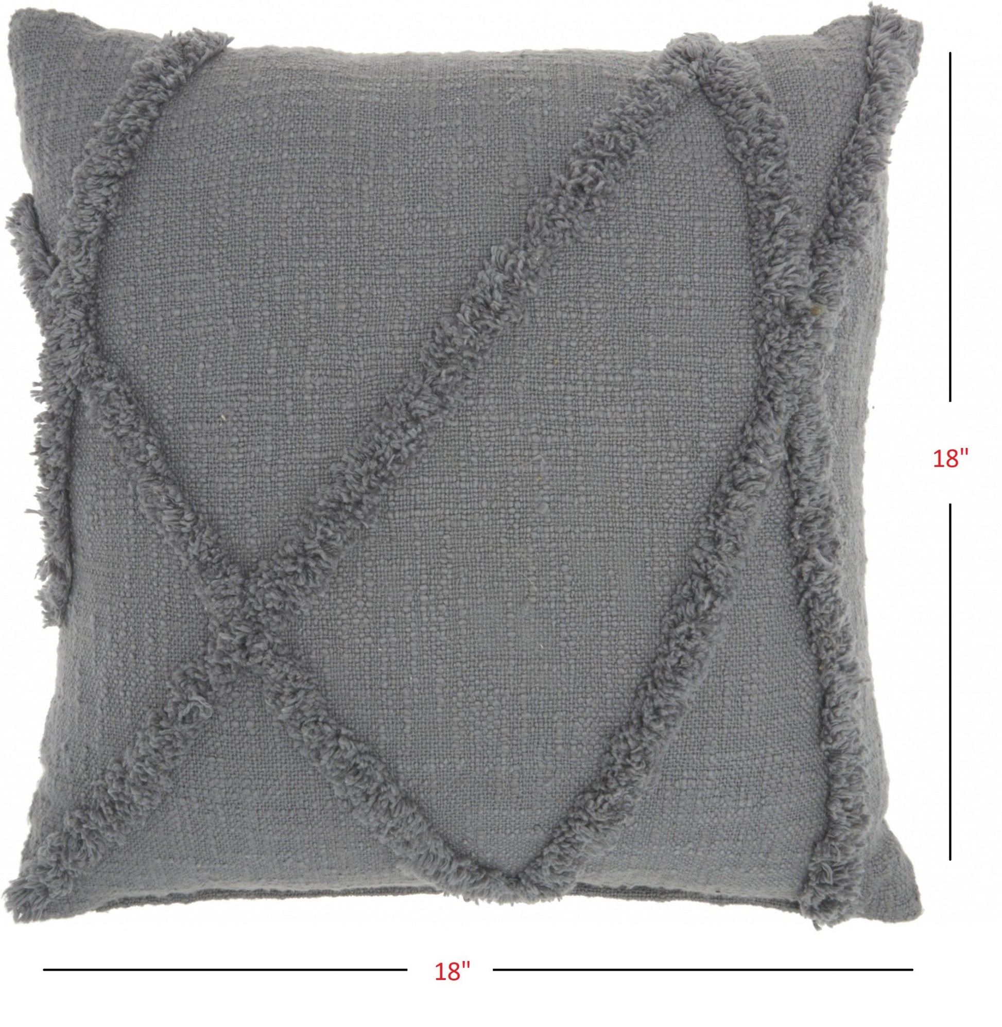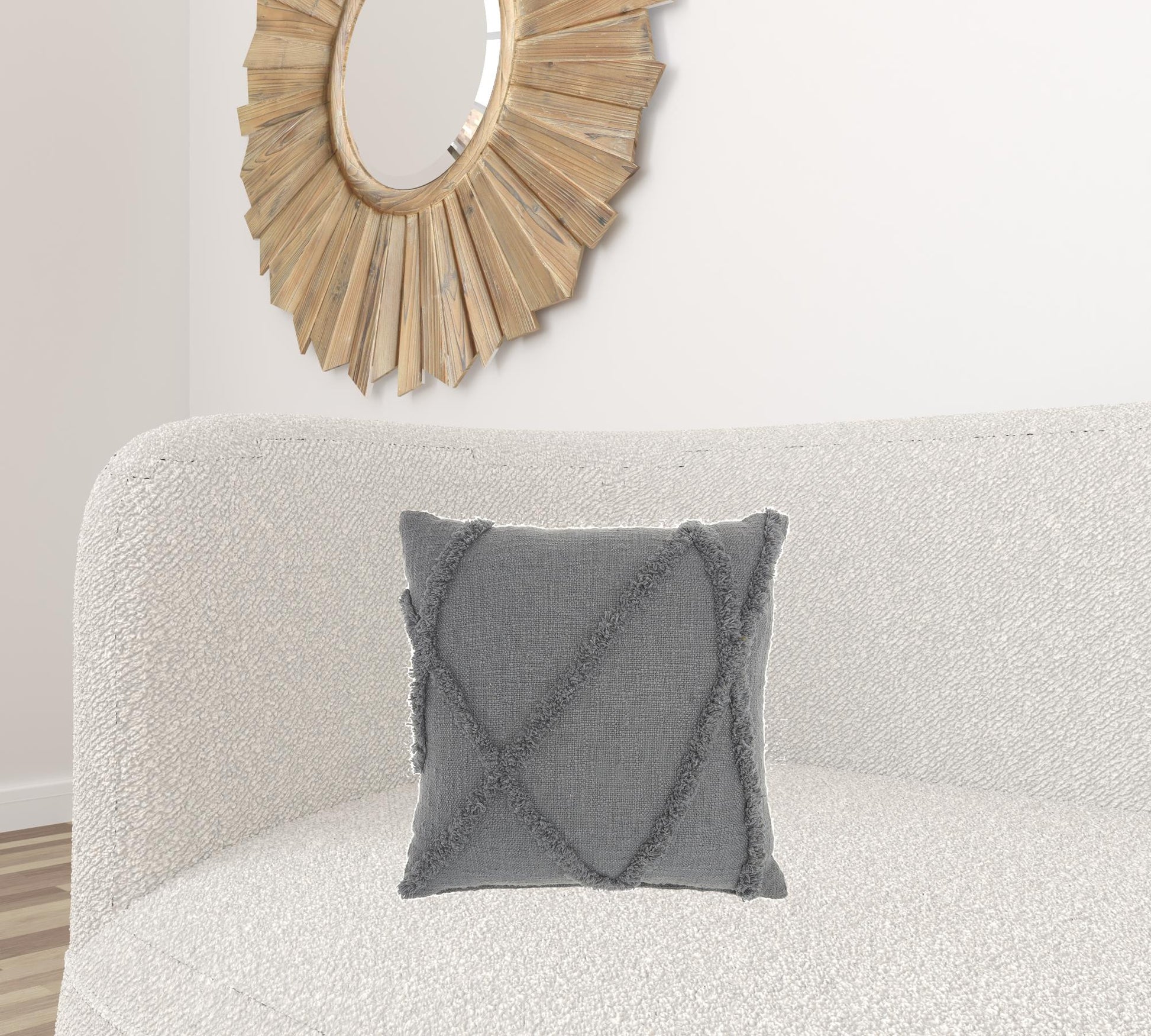 Impressing the viewer and holder with its soft-touch details, this Boho Chic Solid Gray Textured Lines Throw Pillow will engulf anyone holding it with an unearthing sense of comfort and relaxation. The textured lines are made to entice you and your guests with its high-quality material and playful design. Using 100% cotton fabric, the textured pattern is made to last without losing its original allure. The solid gray color works wonders with bright and neutral colors giving a hint of elegance while keeping all of your art pieces in the limelight. Complete your bohemian look while staying true to your creative self with this unique throw pillow. 18” x 18” x 5”