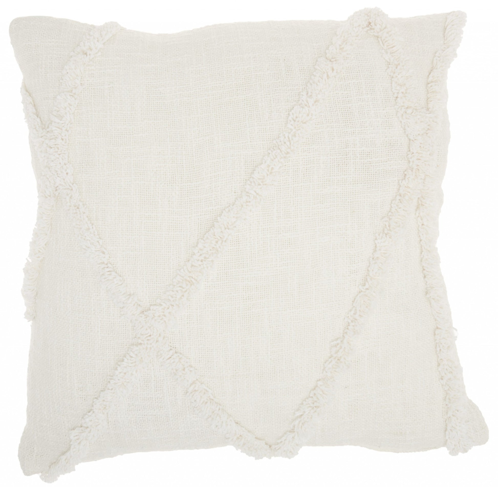 Impressing the viewer and holder with its soft-touch details, this Boho Chic Solid White Textured Lines Throw Pillow will engulf anyone holding it with an unearthing sense of comfort and relaxation. The textured lines are made to entice you and your guests with its high-quality material and playful design. Using 100% cotton fabric, the textured pattern is made to last without losing its original allure. The solid white color works wonders with bright and neutral colors giving a hint of elegance while keeping all of your art pieces in the limelight. Complete your bohemian look while staying true to your creative self with this unique throw pillow. 18” x 18” x 5”