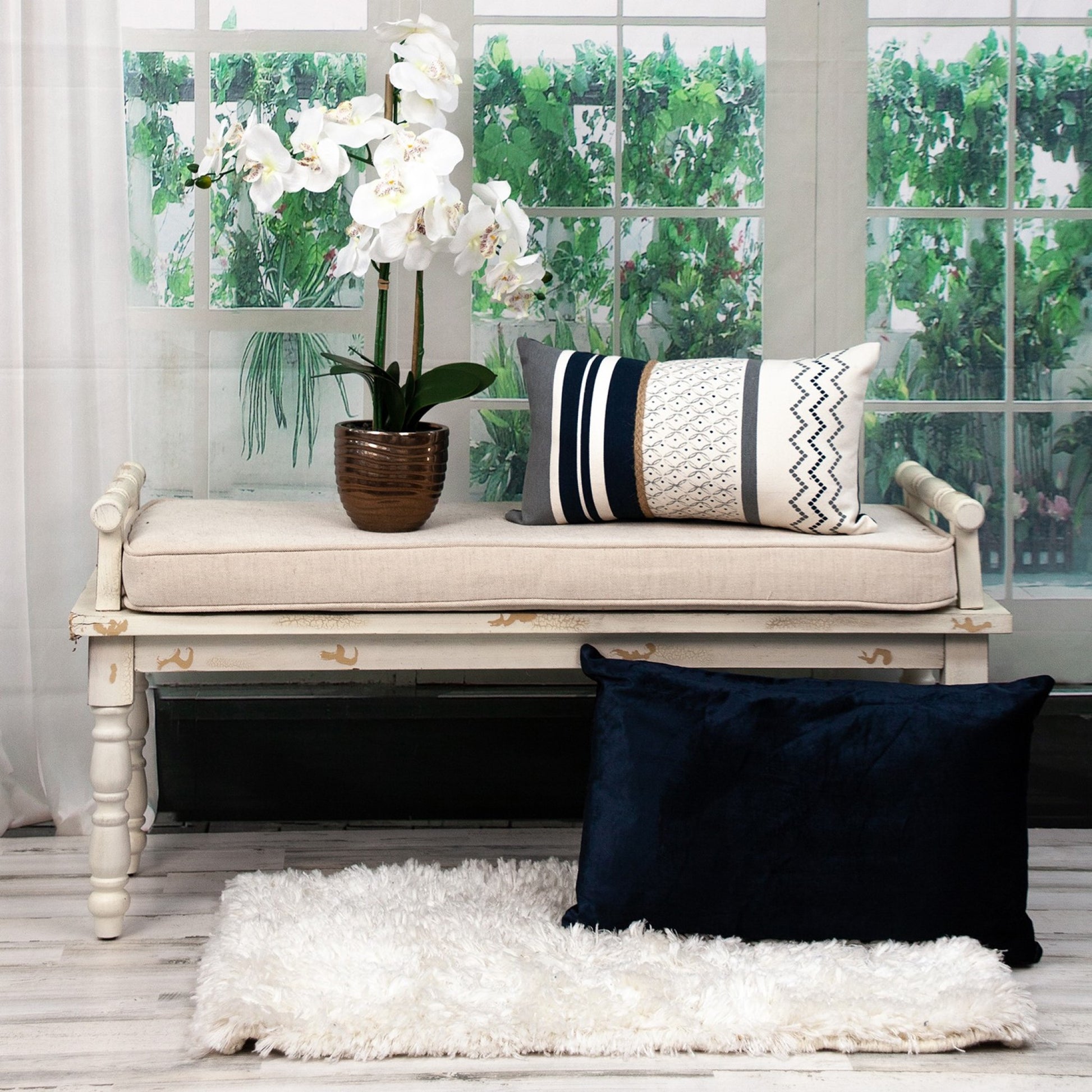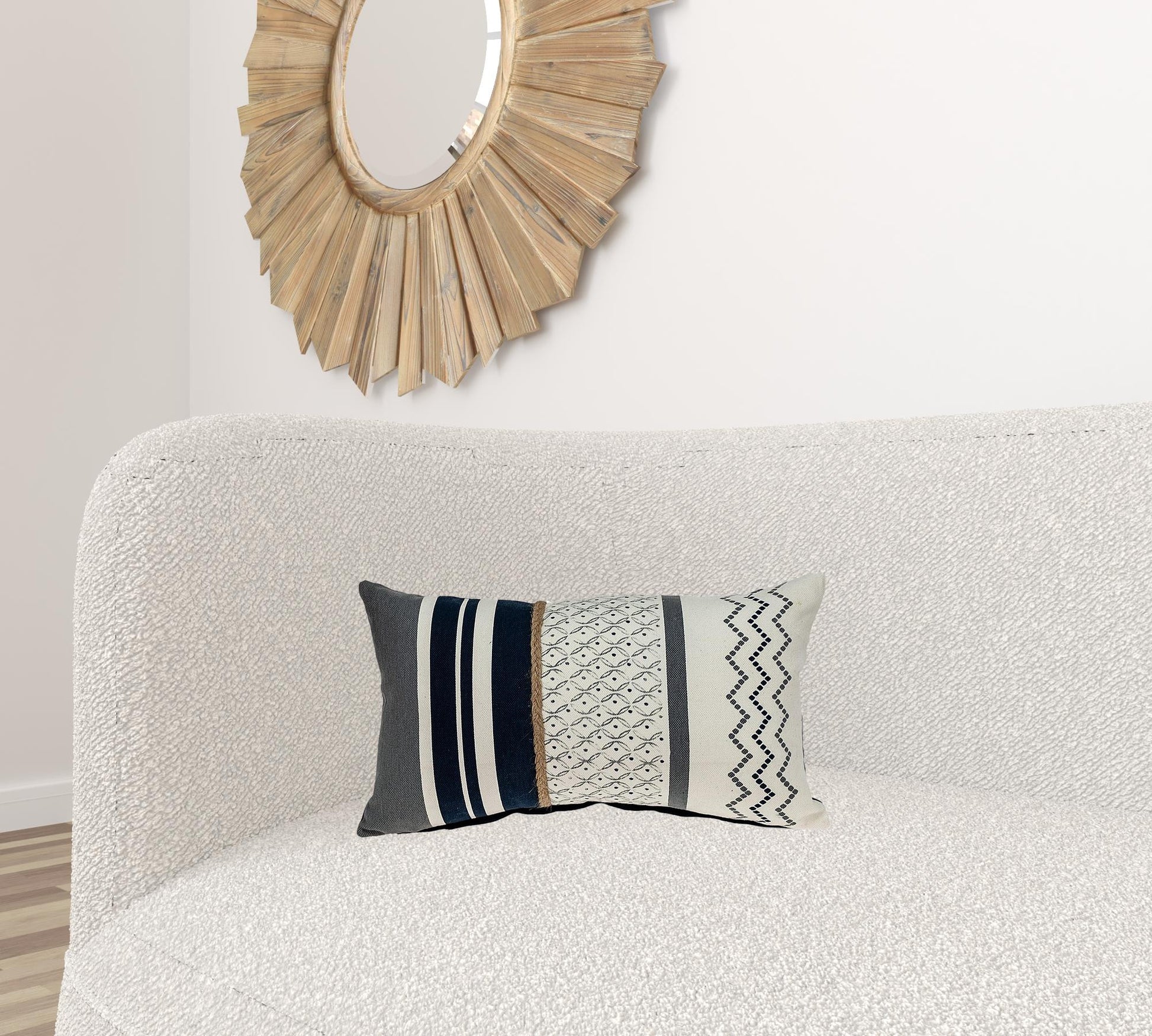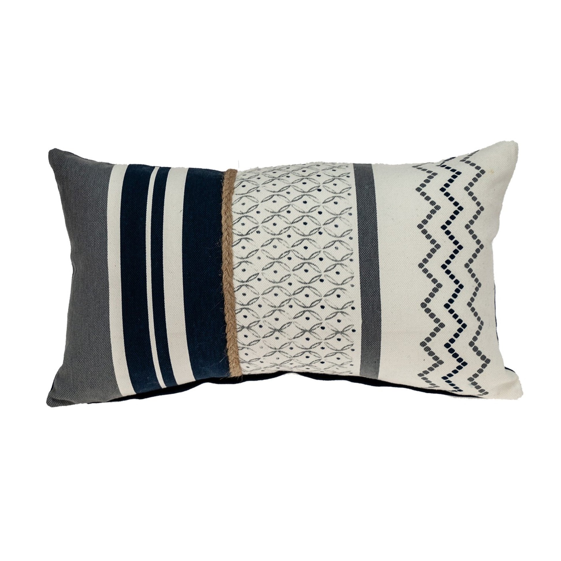 Who said lumbar pillows have to be boring? Take a look at this Boho Geo Braid Lumbar Pillow, an extraordinary piece that will not only provide the much-needed support for your lower back but also brings an air of updated casual cool. To add to the cool vibes, there is a natural straw braid on the front, which gives it an earthy look, and the vanilla and neutral grays and blacks are soothing to the eye and suitable for all types of interiors. The rectangular pillow is 100% cotton, printed on the front with zipper closure and solid color on the back. 12” x 20” x 4”