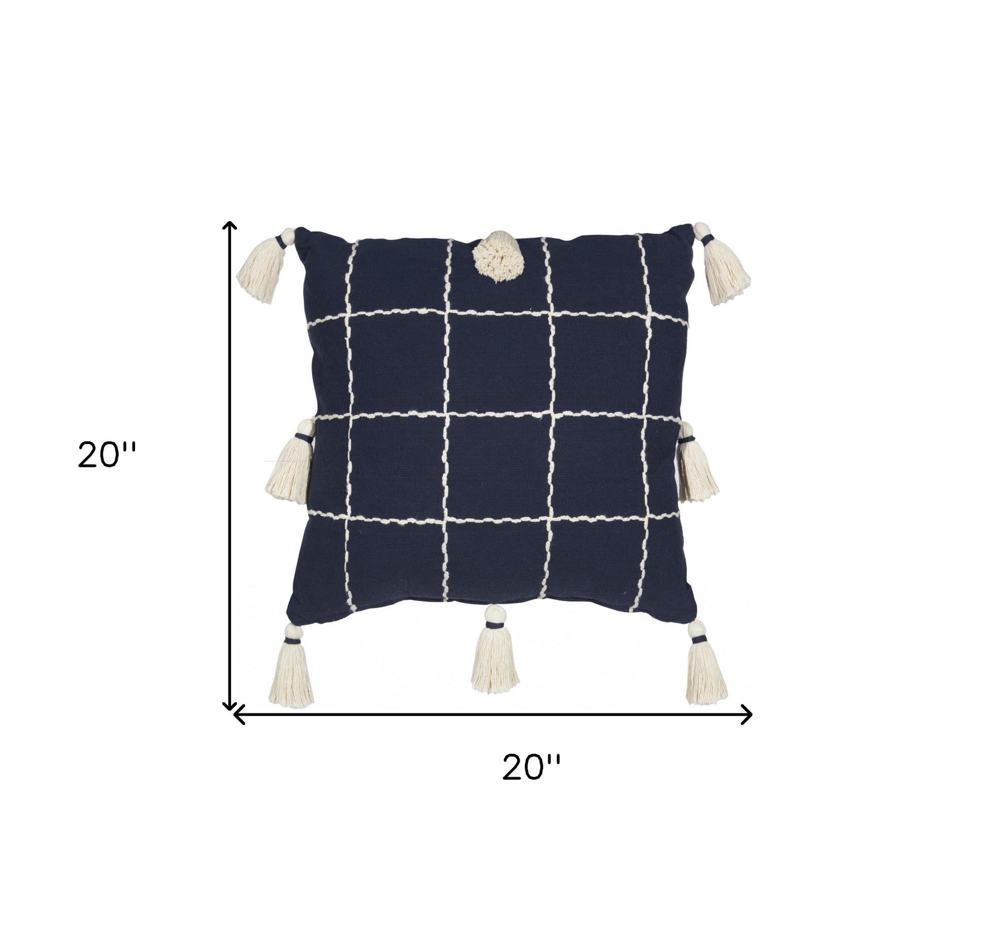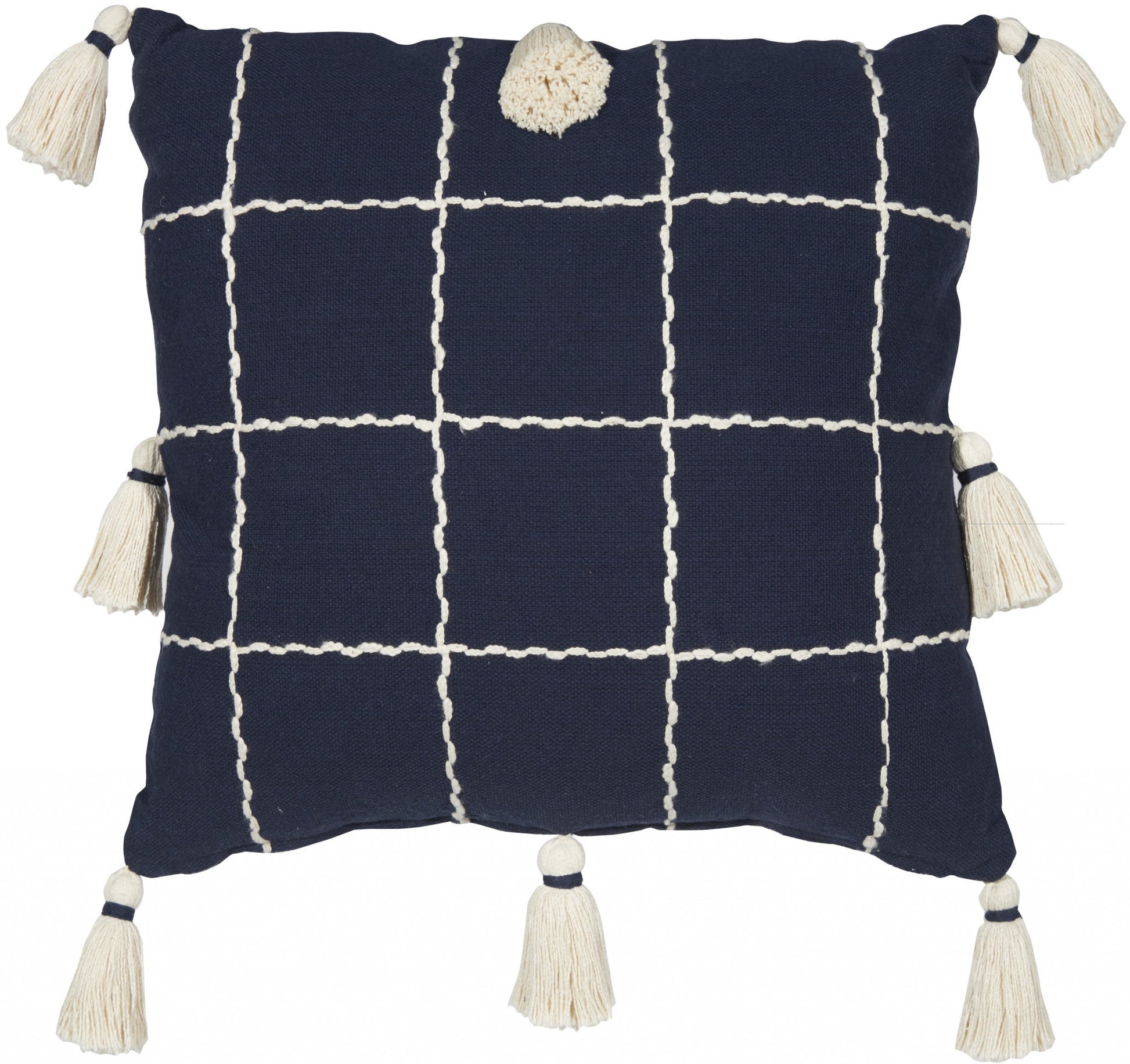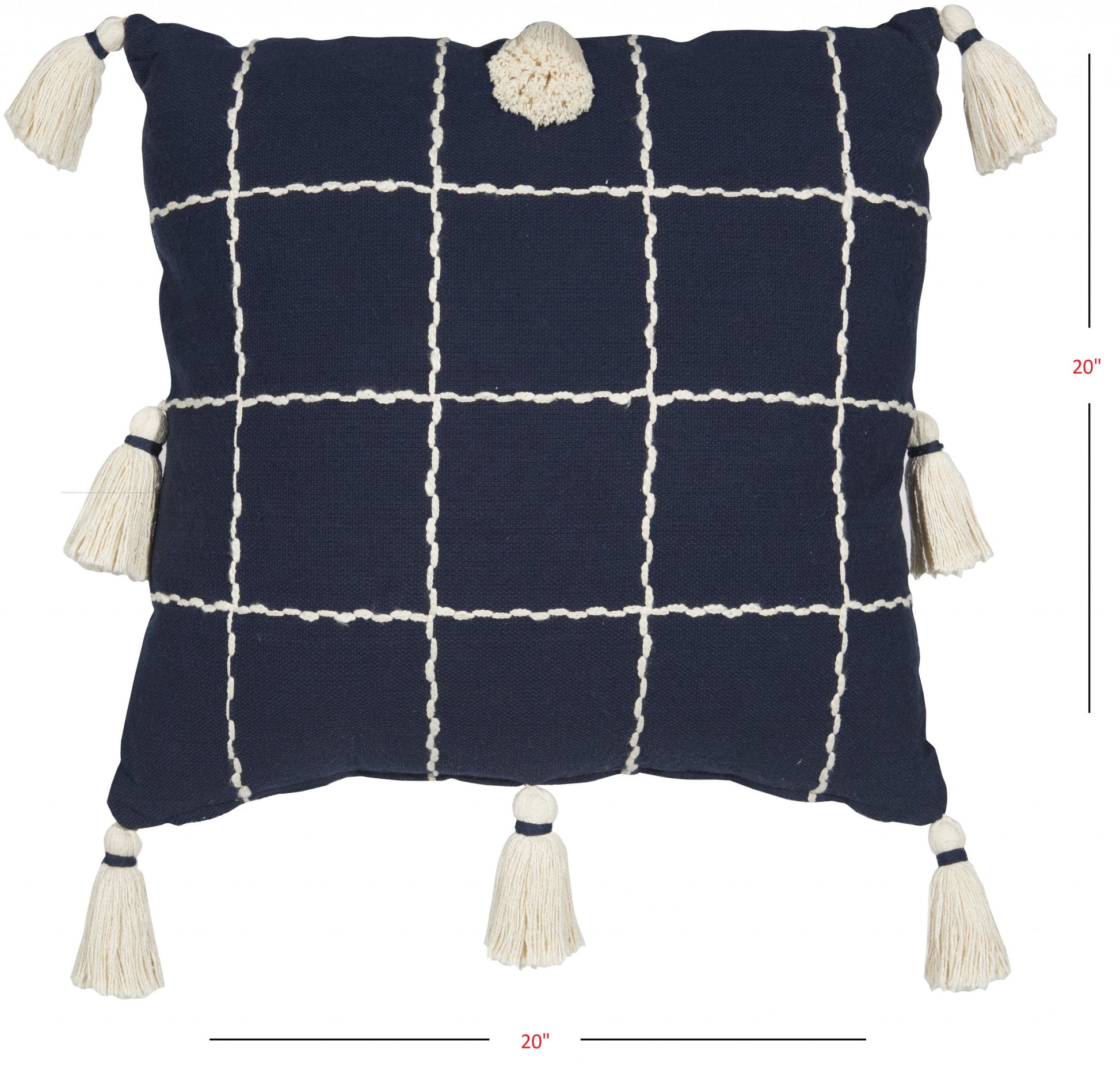 Contemporary and fun, this Boho Handcrafted Navy Accent Throw Pillow will help bring a Bohemian, chic style to your interior, offering plush comfort and easy decorating. This throw pillow is expertly handcrafted, making it a unique item that is made with skill and professionalism. The added feature of a zipper closure allows for easy cleaning of the pillow case, allowing for easy care. The rich color of Navy makes for an effortlessly chic pillow that can suit any sofa, chair or bedding. 5" x 20" x20"