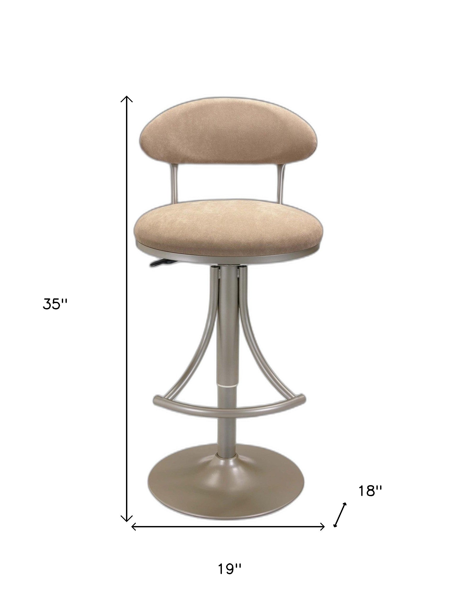 Brown And Silver Velvet And Metal Low Back Adjustable Height Bar Chair
