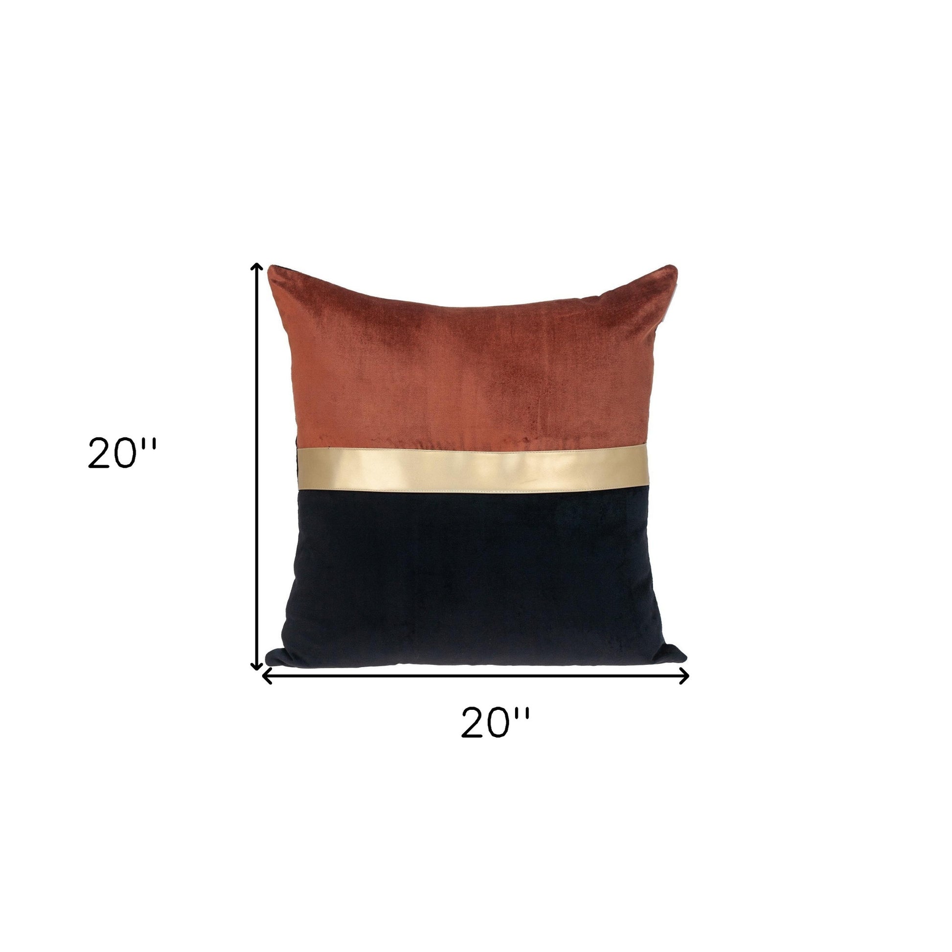 Make a statement with the vibrant Brown and Black Tufted Velvet Square Pillow. Featuring 100% velvet texture, the smooth and soft structure of this pillow brings a little character into your humble space. The luxurious gold band in between the bold hues also adds character to this all velvet multicolored pillow. The monochromatic back of the pillow conveniently conceals a hidden zipper making it easy to remove and reinsert the cushion for cleaning purposes. Brighten your dull space with this dynamic and versatile compact pillow that's add a hint of radiance and brilliance to your home. 20" x 20" x 4"