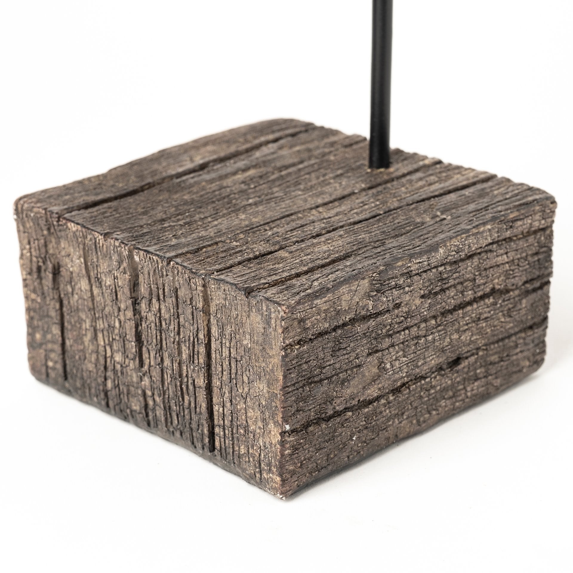 With this Brown Resin Pinecone Shaped sculpture is the perfect way to bring in a nature inspired decor element to your home. The base of this sculpture is made solid wood and is in a thick block shape. The dark brown varnish on top lets the details and grain of the wood show though. From the far edge of the wooden block there is a metal rod that comes up and attaches to the resin pinecone piece. The pinecone piece is made from resin and is colored to a dark brown finish. The details of this pinecone bring in depth and dimension to this whole decor piece and make it look rustic. You can use this decor piece anywhere in your home without worrying about any clashing colors. 14" H x 4" W x 4" D