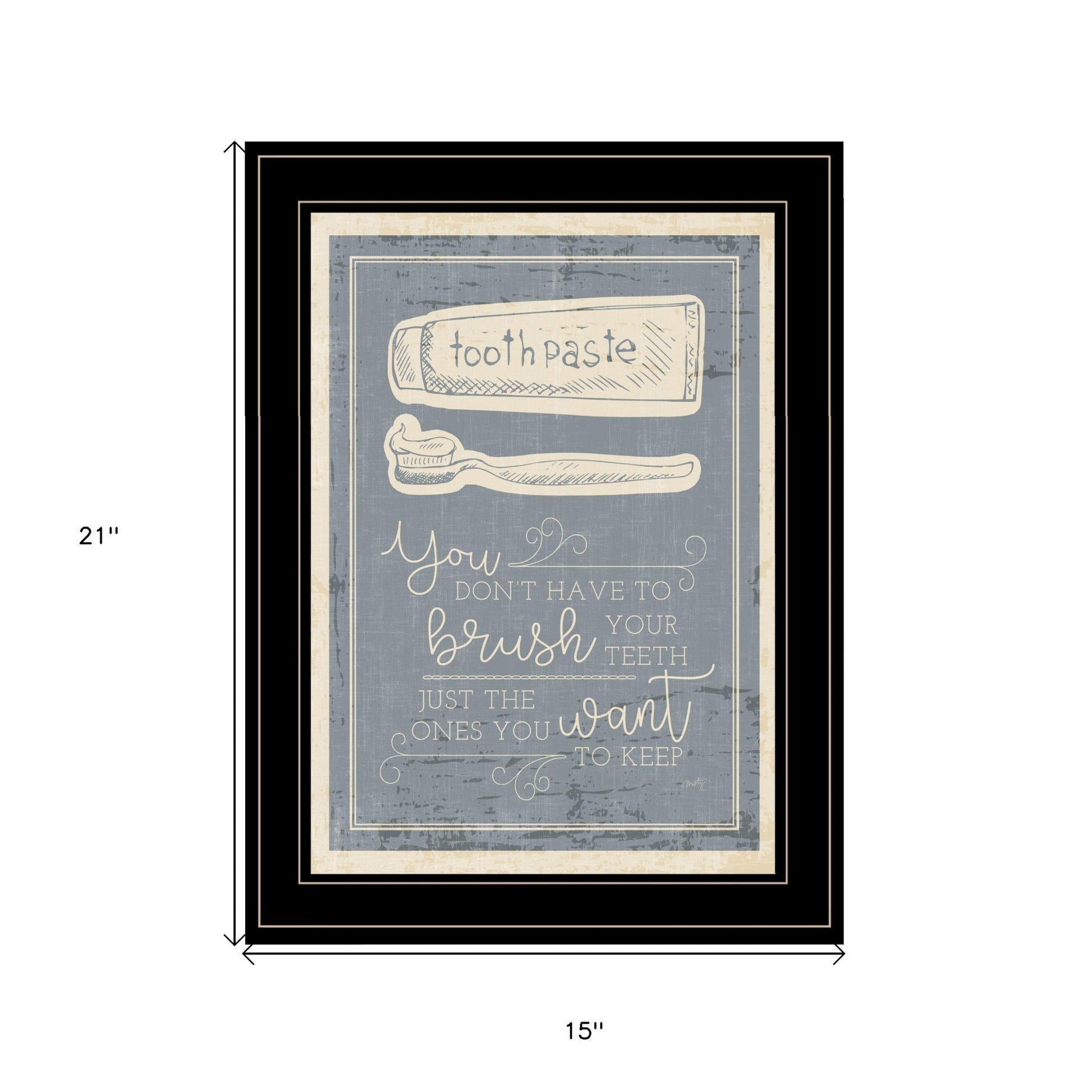 Add an air of fashion to your room and rejuvenate the space with this brush teeth 4 black framed print wall art. This print is a visual artistic expression that allows you to decorate your space in style. Reproduced for you on paper, this hanging decorative accent will be a trendy and fashionable way to dress your walls. Hang on your wall to add some up to date fashion and decoration. Utilize this opportunity to create a focal point in the room with this fabulous wall decor option. 21 inches H x 15 inches W x 1 inches D