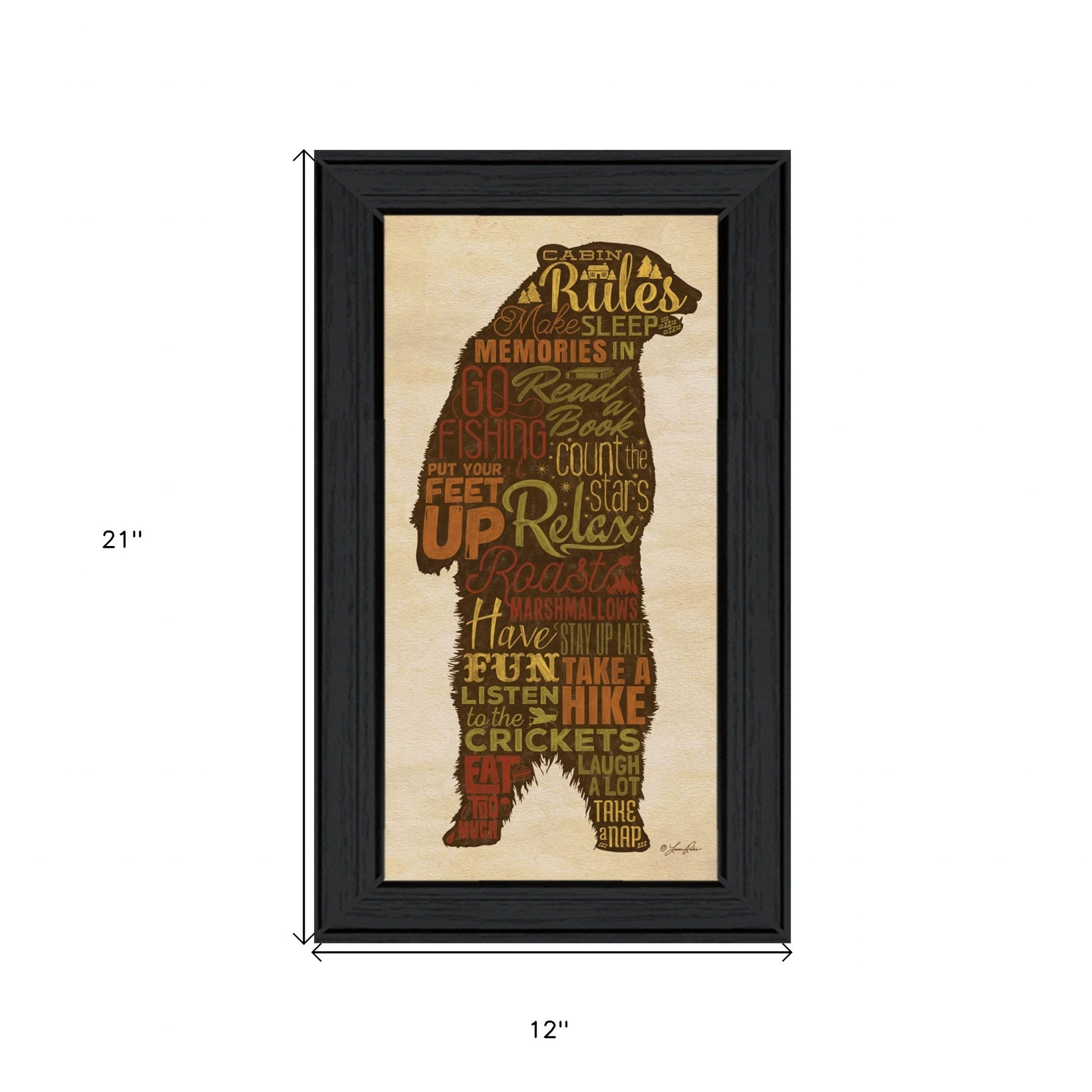 Add an air of fashion to your room and rejuvenate the space with this cabin rules 4 black framed print wall art. This print is a visual artistic expression that allows you to decorate your space in style. Reproduced for you on paper, this hanging decorative accent will be a trendy and fashionable way to dress your walls. Adding this hanging wall art to your space to make your room feel more finished and attractive. Utilize this opportunity to create a focal point in the room with this fabulous wall decor option. 21 inches H x 12 inches W x 1 inches D