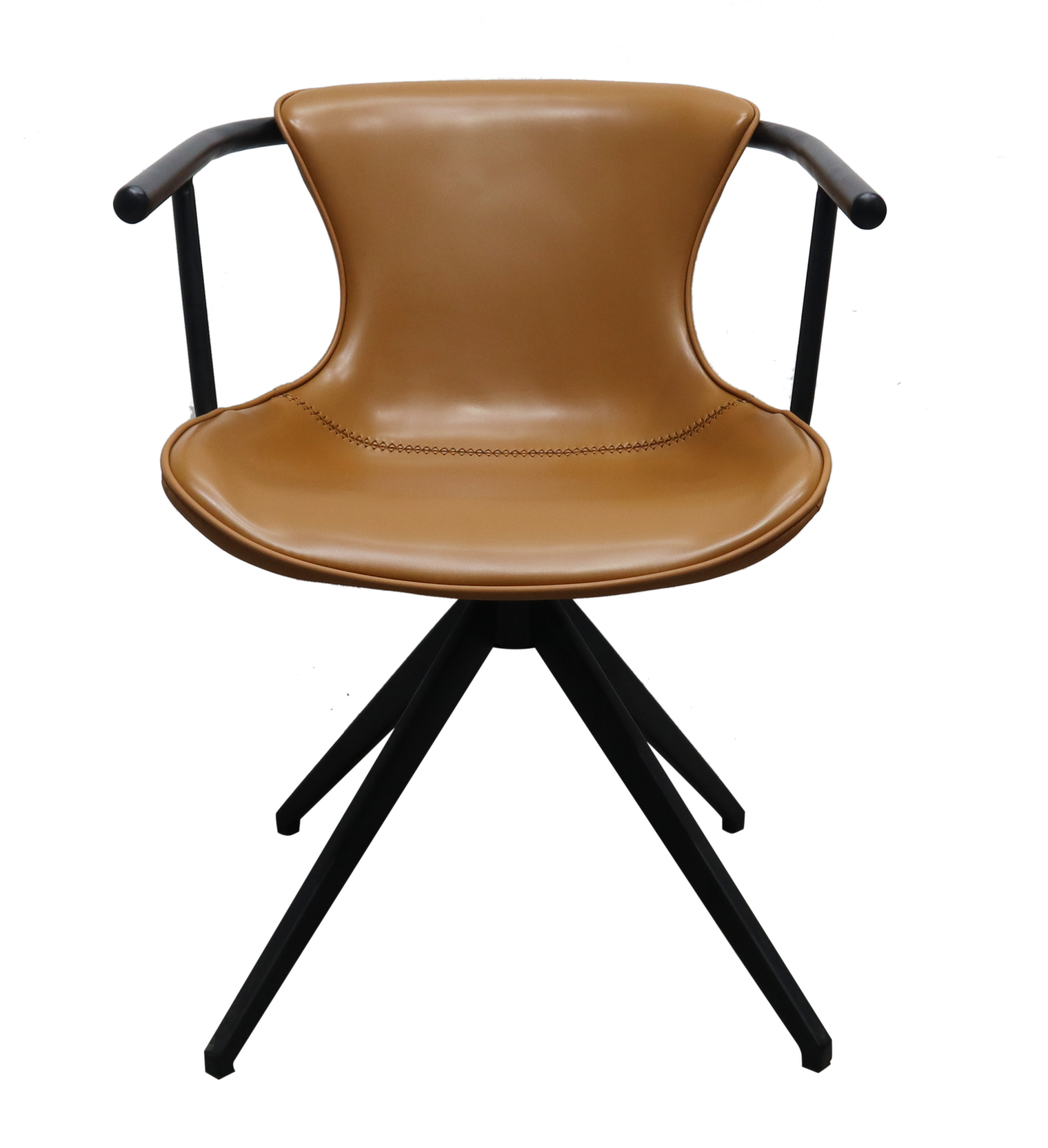 Stylish and super appealing, the Camel Faux Leather Industrial Dining Chair is the ultimate dining chair for industrial and modern homes. With its unique structure and well-balanced metal/faux leather combo, it is an eye-catching piece that every guest will enjoy. It features a steel frame with sloping armrests and a beautifully designed seat upholstered with camel faux leather. 31" H x 20" W x 23" D