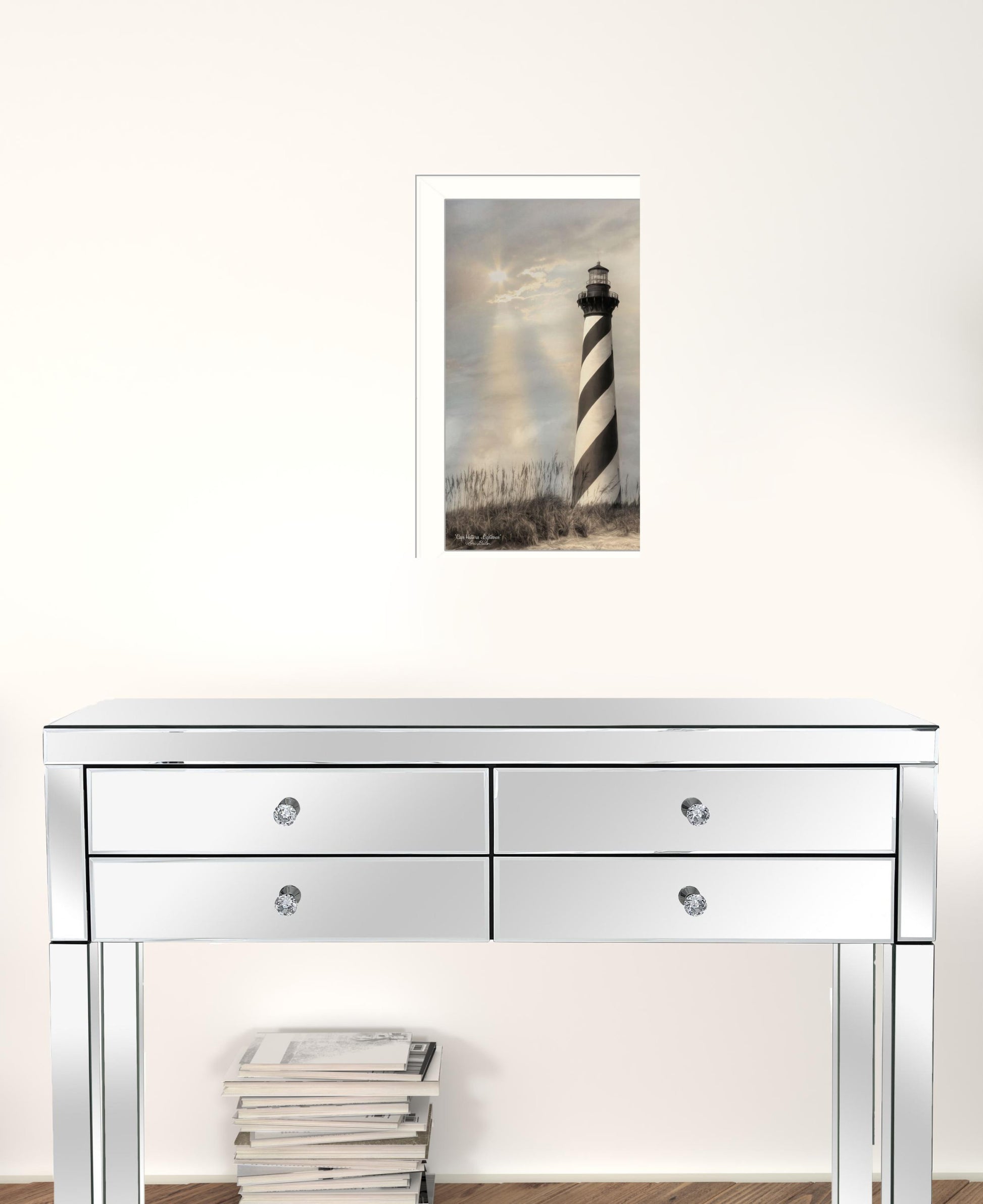 This cape hatteras lighthouse 2 white framed print wall art will add a beautiful decorative accent to your decor. This print is a visual artistic expression that allows you to decorate your space in style. Reproduced for you on paper, this hanging decorative accent will be a trendy and fashionable way to dress your walls. Hang on your wall to add some up to date fashion and decoration. Utilize this opportunity to create a focal point in the room with this fabulous wall decor option. 20 inches H x 14 inches W x 1 inches D