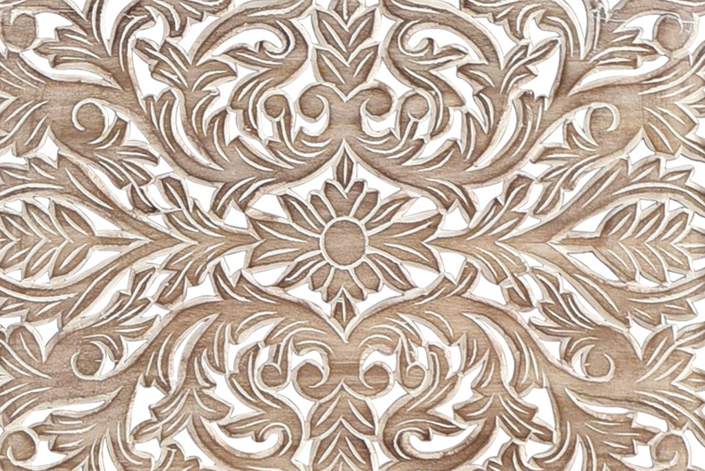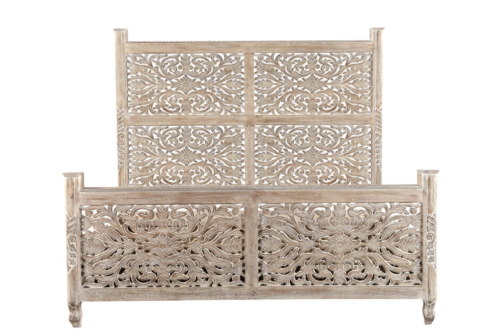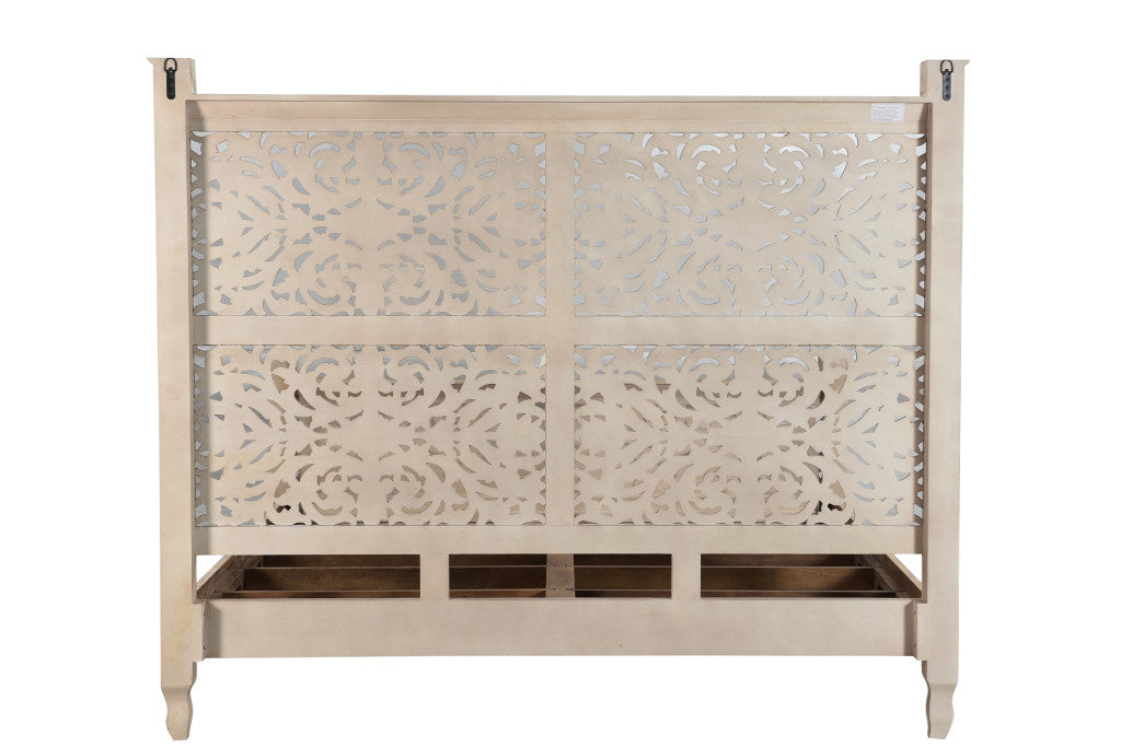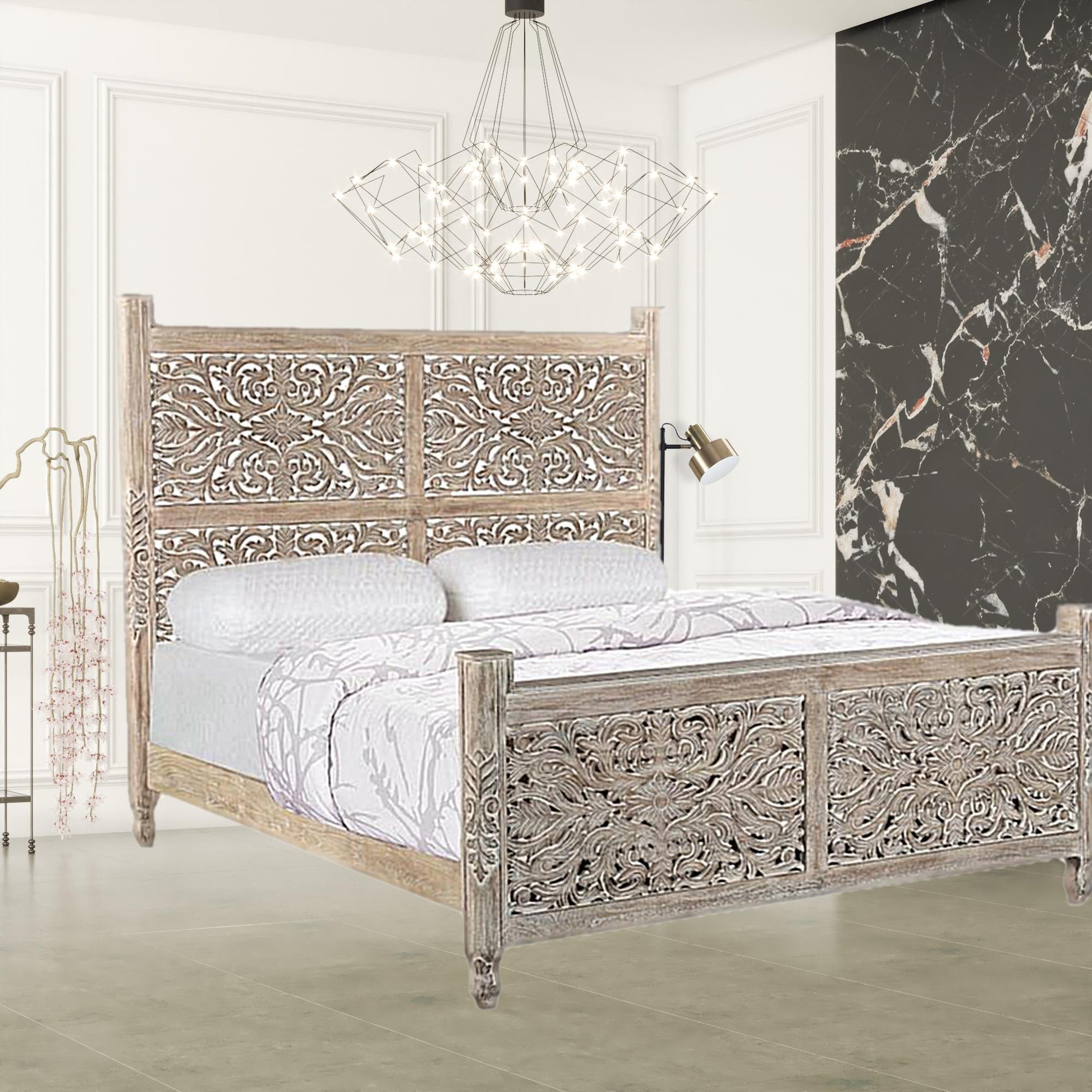 Add a luxuriously appointed bed that will help you create an oasis of comfort and relaxation in your home with this solid wood king gray bed. Built to last, this piece not only looks good but reflects high quality craftsmanship from top to bottom. Featuring hand carved design and a distressed wash finish that highlights the beauty of genuine and natural wood. This bed will help to create a peaceful environment that will provide restful slumber for years to come. 69" H x 81" W x 89" D
