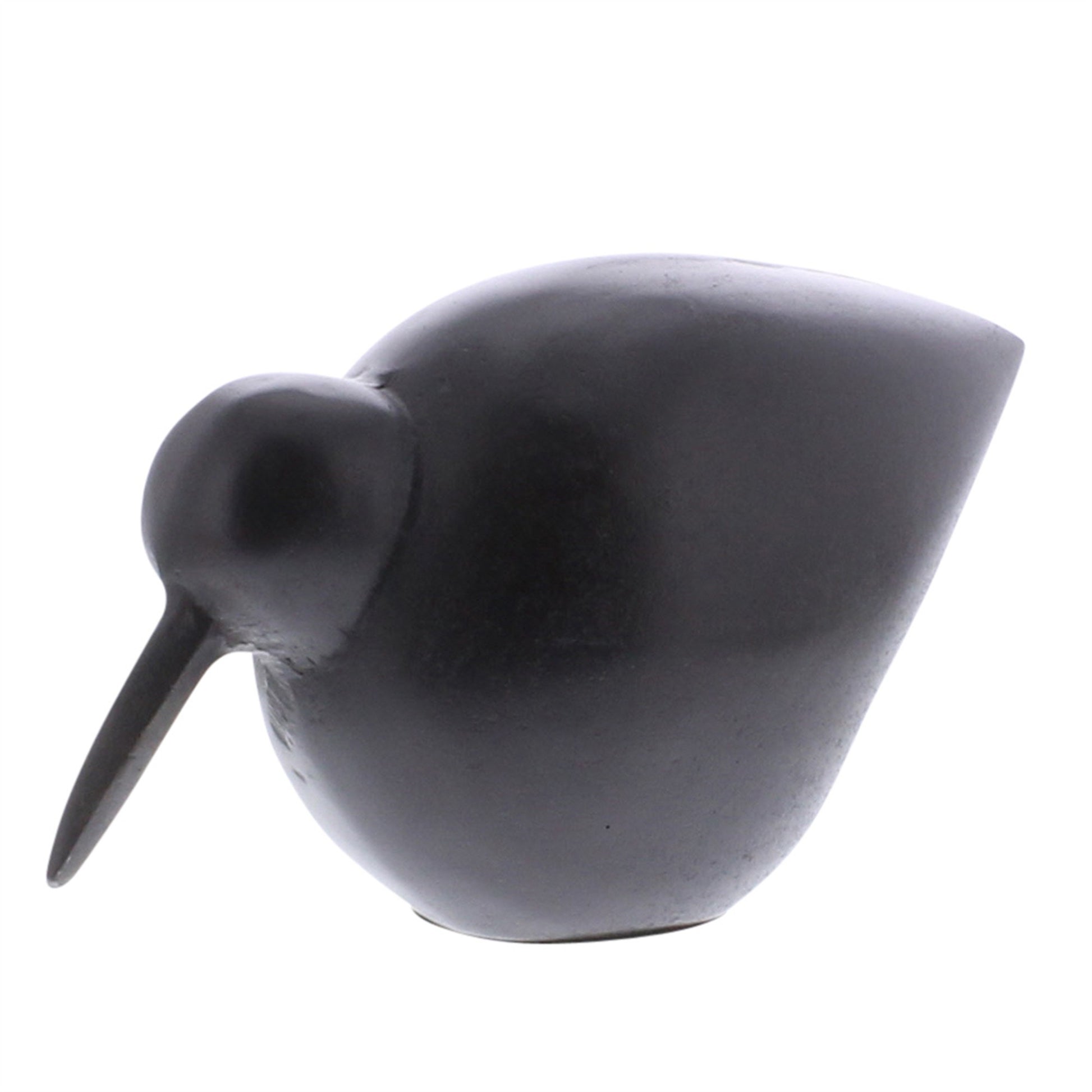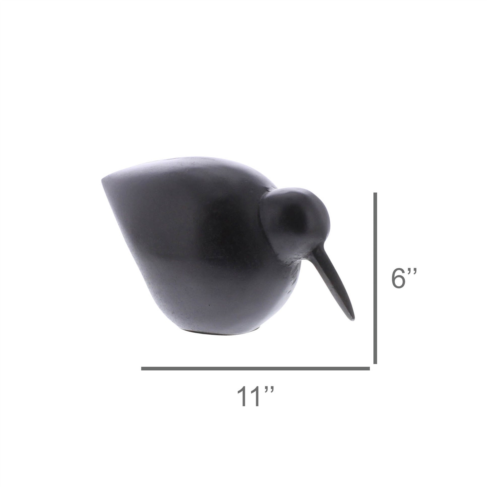 Add a touch of whimsical and unique design to your home with this Cast Aluminum Bent Bird Sculpture. This piece is made of cast aluminum and has a black colored finish on it. The shape of this piece mimics a bent bird. The body has a solid shape to it with the round head attached to the side. The beak is long and narrow and the whole stature of this piece makes it seems like the bird is bending down. You can use this whimsical piece anywhere in your home as a stand-alone piece or grouped with other similar pieces. 6" H x 5" W x 11" D
