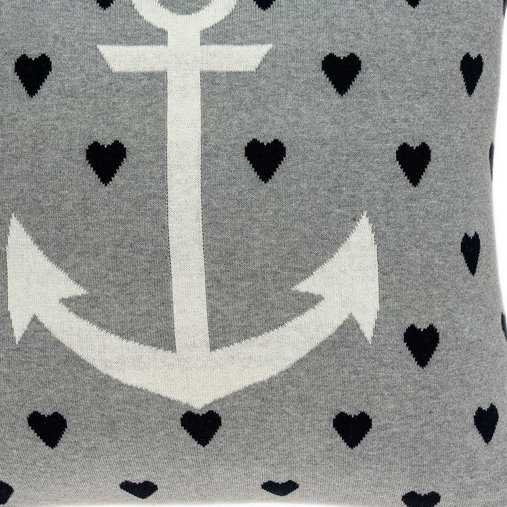 Featuring a ship anchor pattern, this pillow cover comes with seafaring and coastal to transform your home ambience and arrangement. Get inspired by this nautical styled accent piece well-crafted from 100 percent cotton material. Measuring 18 by 5 by 18 inches, our pillow cover is perfectly sized and filled with poly insert for your maximum comfort. The modern design is complemented by a charming Gray/blue finish, white anchor, and hearts to show how much you love the sea.