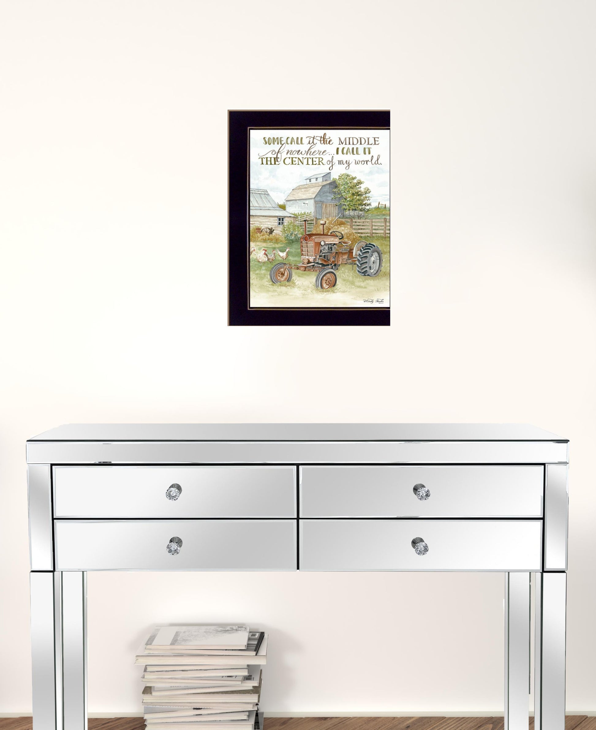 This center of my world black framed print wall art will add a beautiful decorative accent to your decor. This print is a visual artistic expression that allows you to decorate your space in style. Reproduced for you on paper, this hanging decorative accent will be a trendy and fashionable way to dress your walls. Hang on your wall to add some up to date fashion and decoration. Instantly liven up your space with this art that brings color and dimension to your walls. 18 inches H x 14 inches W x 1 inches D