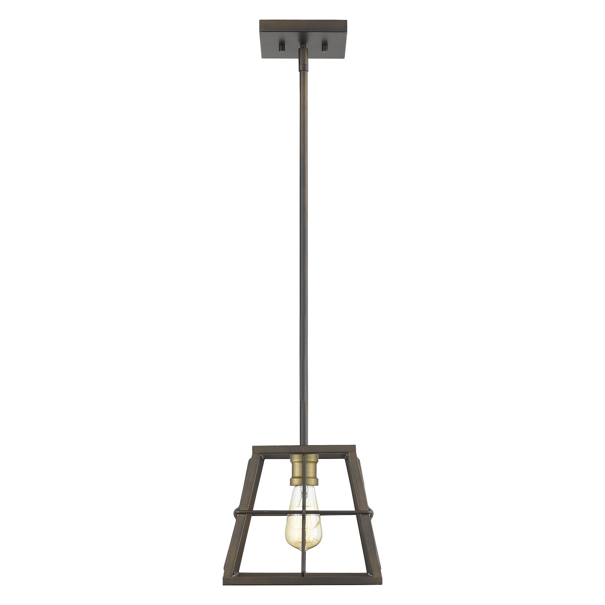 There is nothing square about Charley's cage-like framing. Finished in oil-rubbed bronze and accented with raw brass sockets and stems. A perfect addition to any home.