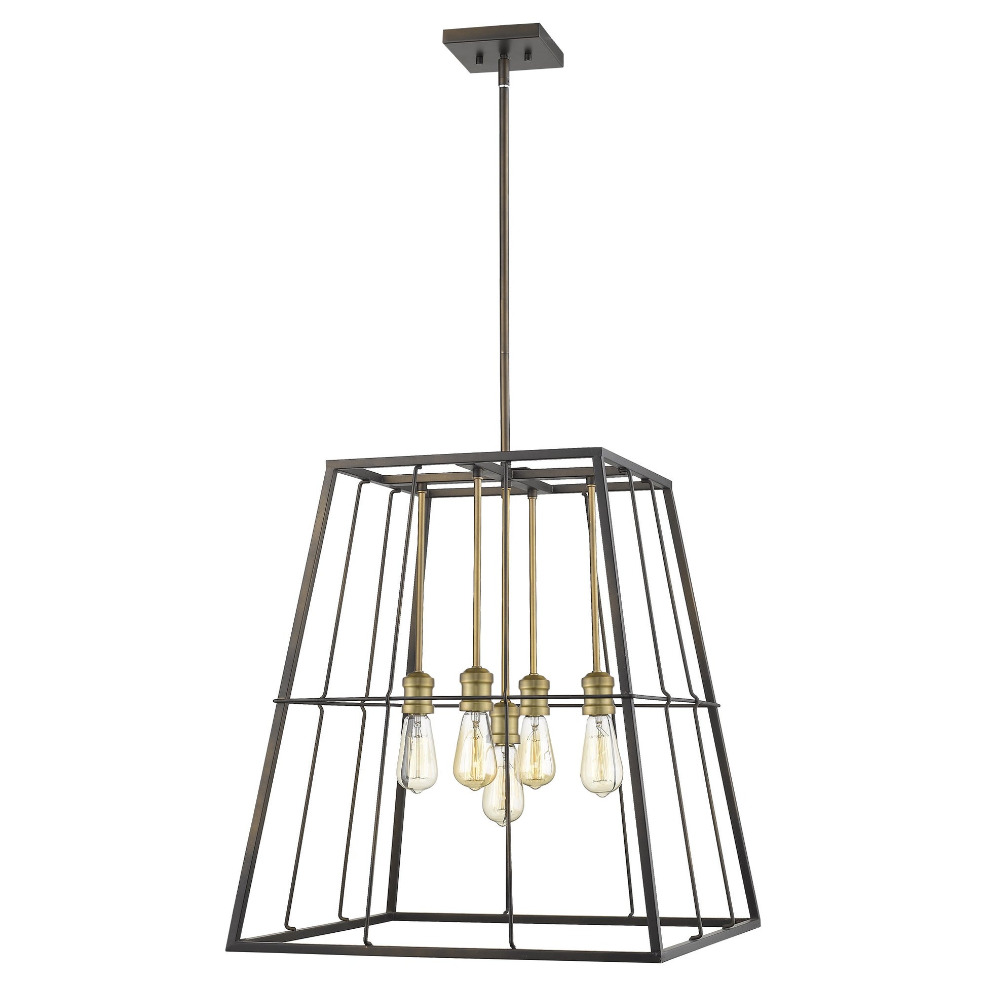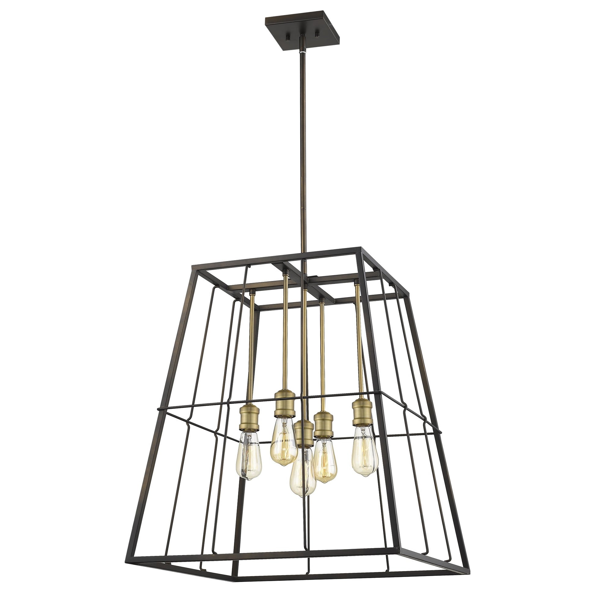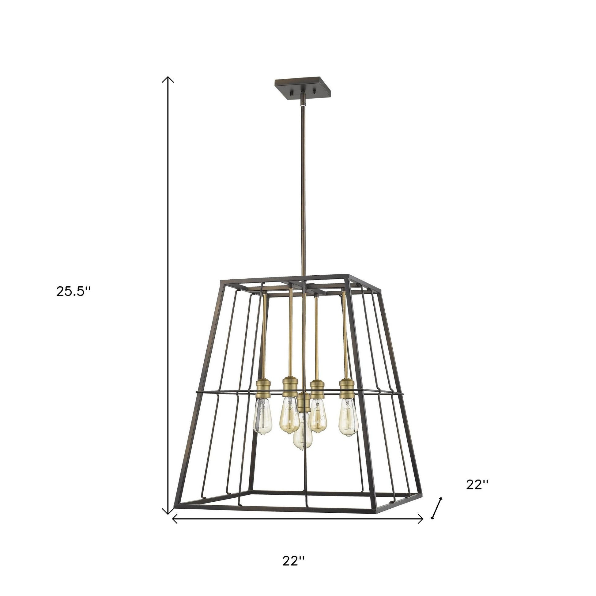 There is nothing square about Charley's cage-like framing. Finished in oil-rubbed bronze and accented with raw brass sockets and stems. A perfect addition to any home.