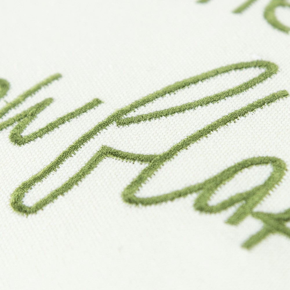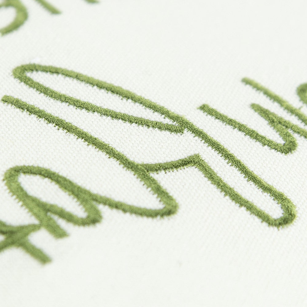 Chase the Snowflakes Green and White Decorative Throw Pillow is a good reminder of the need to indulge our whimsical and playful side sometimes. Hand tied French Knots give texture to the green embroidery of the snowflakes that border the top and bottom of this cute accent. Emblazoned with the endearing saying "Take time to Chase the Snowflakes" this simple yet special pillow can be left out all winter. This generously sized 20" x 20" decorative accent pillow features a coordinating solid back with a hidden zipper closure for convenience.